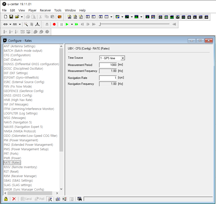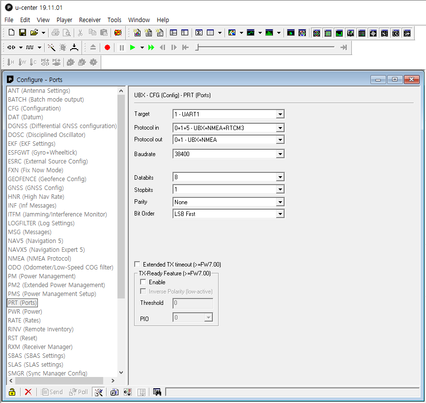 3. u-center의 설정은 9600이므로, port 탭에서 send를 누른 순간 u-center와 gps 사이의 통신은 유효하지 않다.