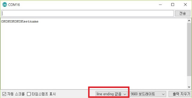 HC-06기준으로 line ending없음(No line ending)을 선택해야합니다.