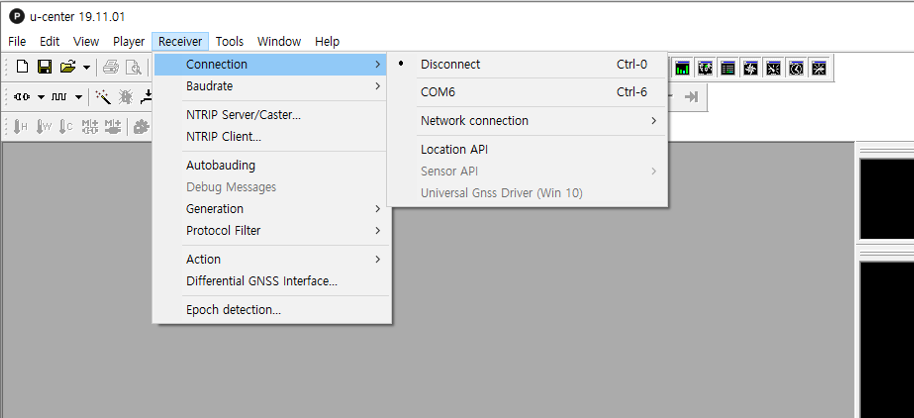 1. u-center를 연결했을 때 기본적으로 baudrate은 9600이다.