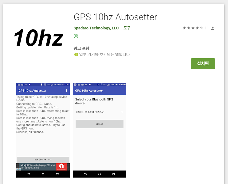 저의 경우는 이 앱으로 10hz 설정이 되었습니다.