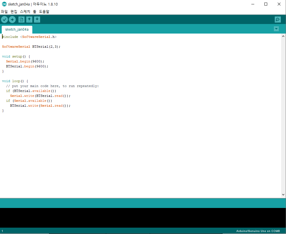setup함수에서는 초기에 아두이노와 9600으로 통신하고, HC-06도 9600으로 통신하도록 선언합니다.