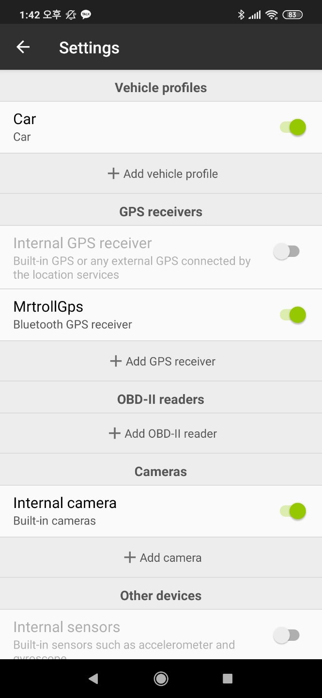 레이스크로노를 실행하고 상단 설정버튼을 눌러 외장 GPS를 추가합니다.