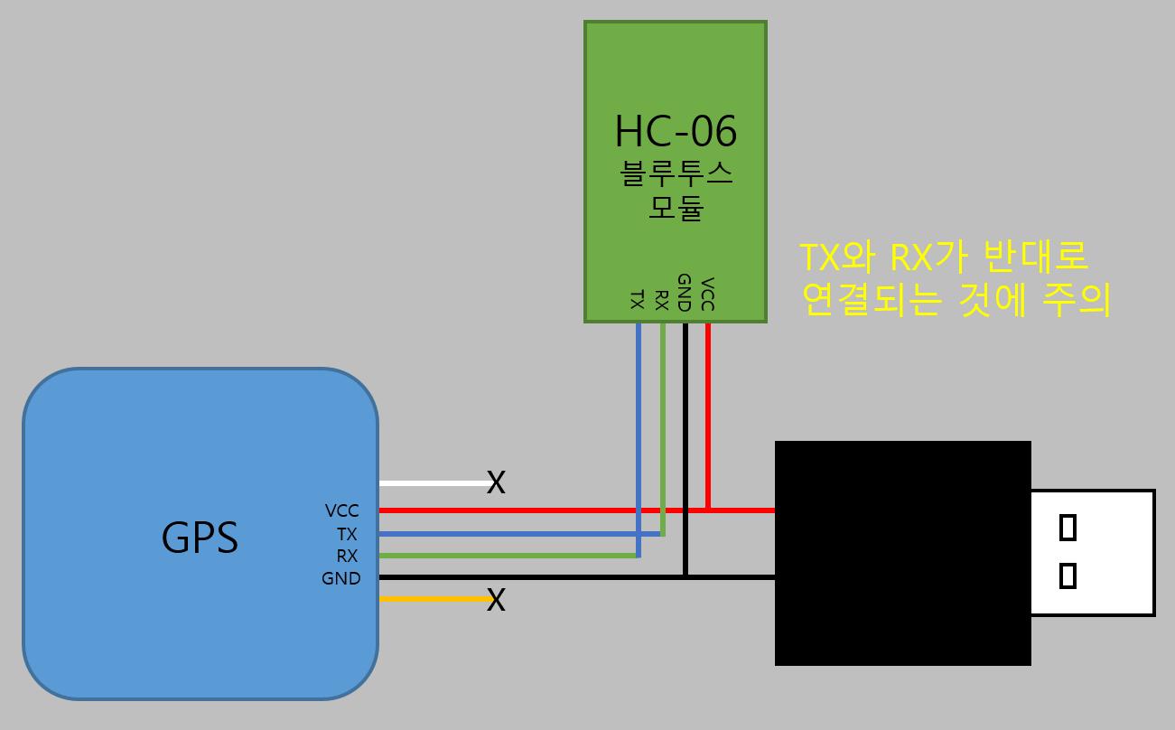 같은 원리로 HC-06이 TX(송신)하는 것을 GPS가 RX(수신)해야하기 때문에 이와 같이 결선이 됩니다.