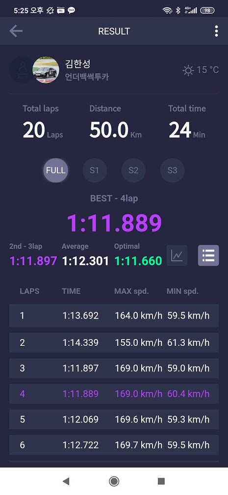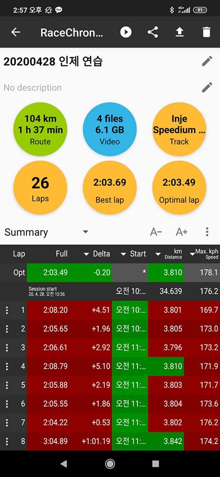 아직 미숙한 부분이 많지만 전반적으로는 큰 실수 없이 내가 원하는 라인이나 느낌으로 탄 랩에서 베스트랩이 나왔다.