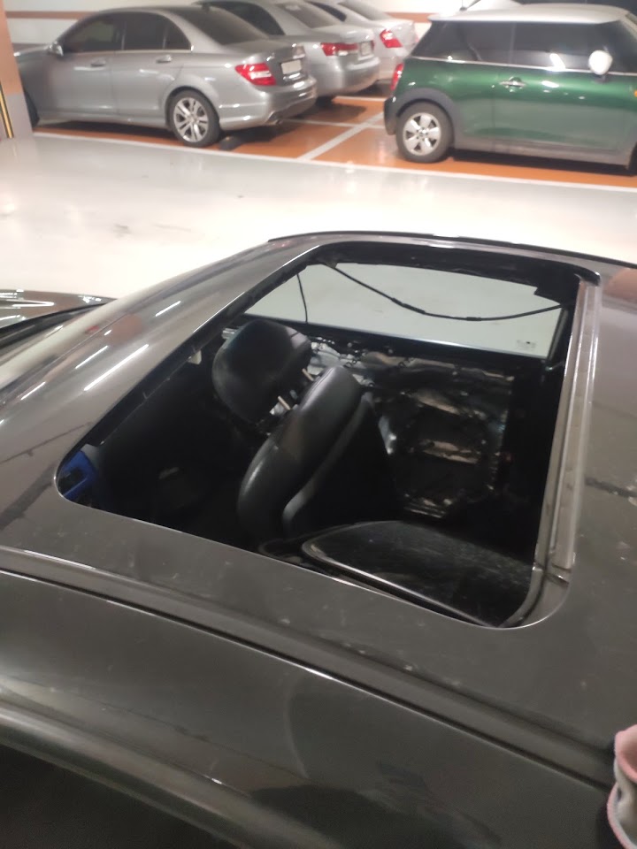 2019년 시즌을 보내면서 도어트림도 뜯어내고, 센터콘솔도 없애고, 트렁크 내장재들도 없애버렸다. 기왕 이렇게 된거 좀 더 덜어내봐야겠다는 생각이 들었다. 현재 상황에서 경량화해볼만한 포인트는 확실히 하나있다. 그건 바로 선루프다.