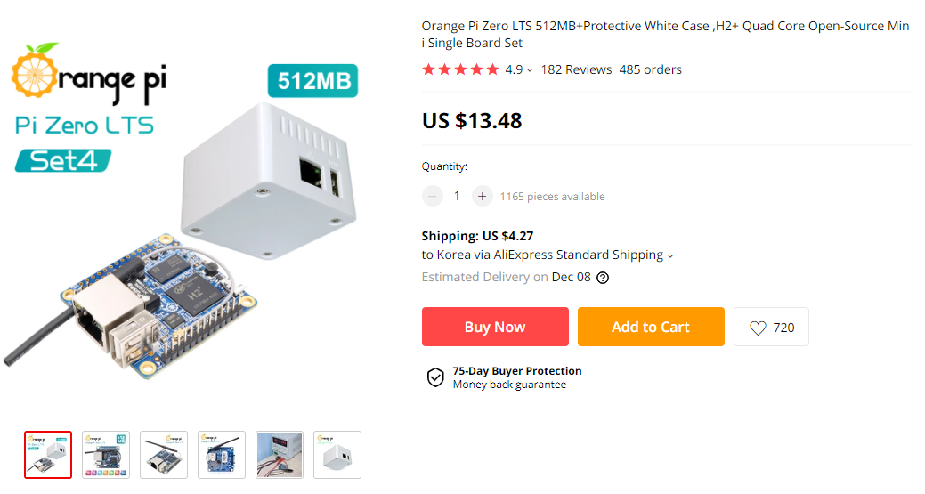 일단 오렌지파이는 구매하여 배송 중이고(글을 쓰는 오늘 기준으로 오늘 도착 예정+_+) 오렌지파이가 도착하면 조립(?)과 설치(??)와 OS 이미지를 씌워서 부팅하고 접속한 다음 인터넷 접속과 크론탭이 기본 탑재 되어있는지를 확인하여 다음 포스팅에서 다뤄볼 예정이다.