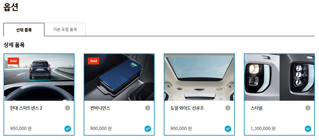 쏘렌토랑 달리 메모리시트가 옵션으로 따로 있네? 컨비니언스 옵션 추가.