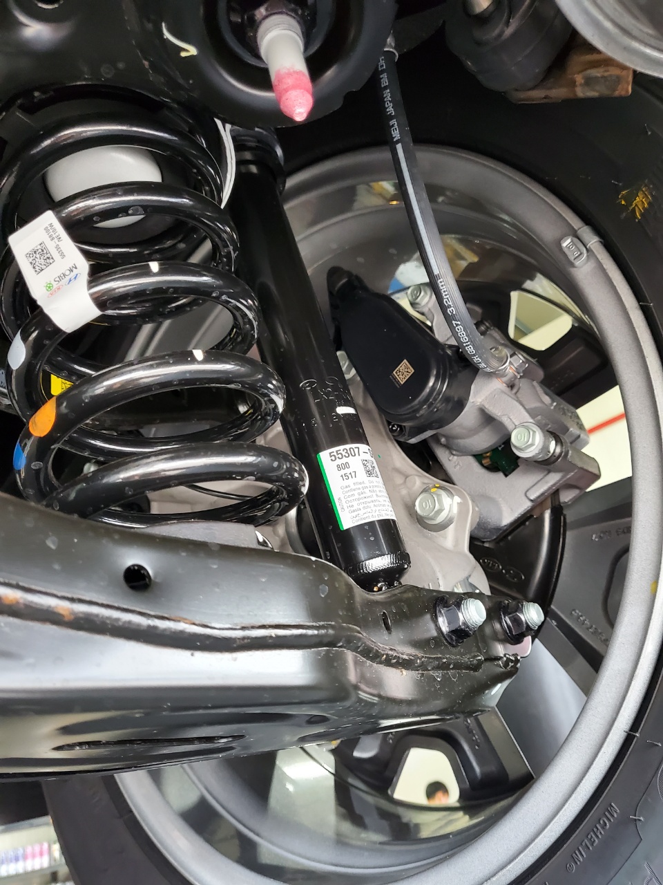 대다수의 부품이 당연히 새것이라서 블링블링하다. 다만 하체 부품의 일부(로워암)에 용접자리 처럼 생긴부분에 녹이 살짝 피어있는게 마음에 걸렸었다. 알아본 결과, 없으면 베스트겠지만 있다고 문제되지는 않는 것이라고 한다. 제조 시 전착도장하는데 용접자리 표면이 울퉁불퉁해서 떨어진 자리로 녹이 살짝 핀 것.