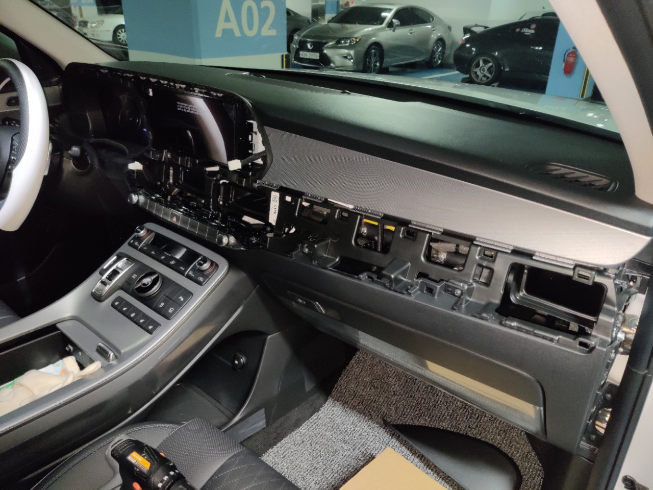 일단 질러놓긴했지만 신차를 똥손으로 뜯는다는 것은 사실상 쉬운 결심은 아니었었습니다. 그래서 제품 사진만 찍어놓고 차뜯는 방법을 유툽으로 보고 또 보았습니다. 그리고 어느정도 마음의 결심이 선 비오는 토요일을 맞이하여 지하주차장으로 내려가서 작업을 해보았습니다.