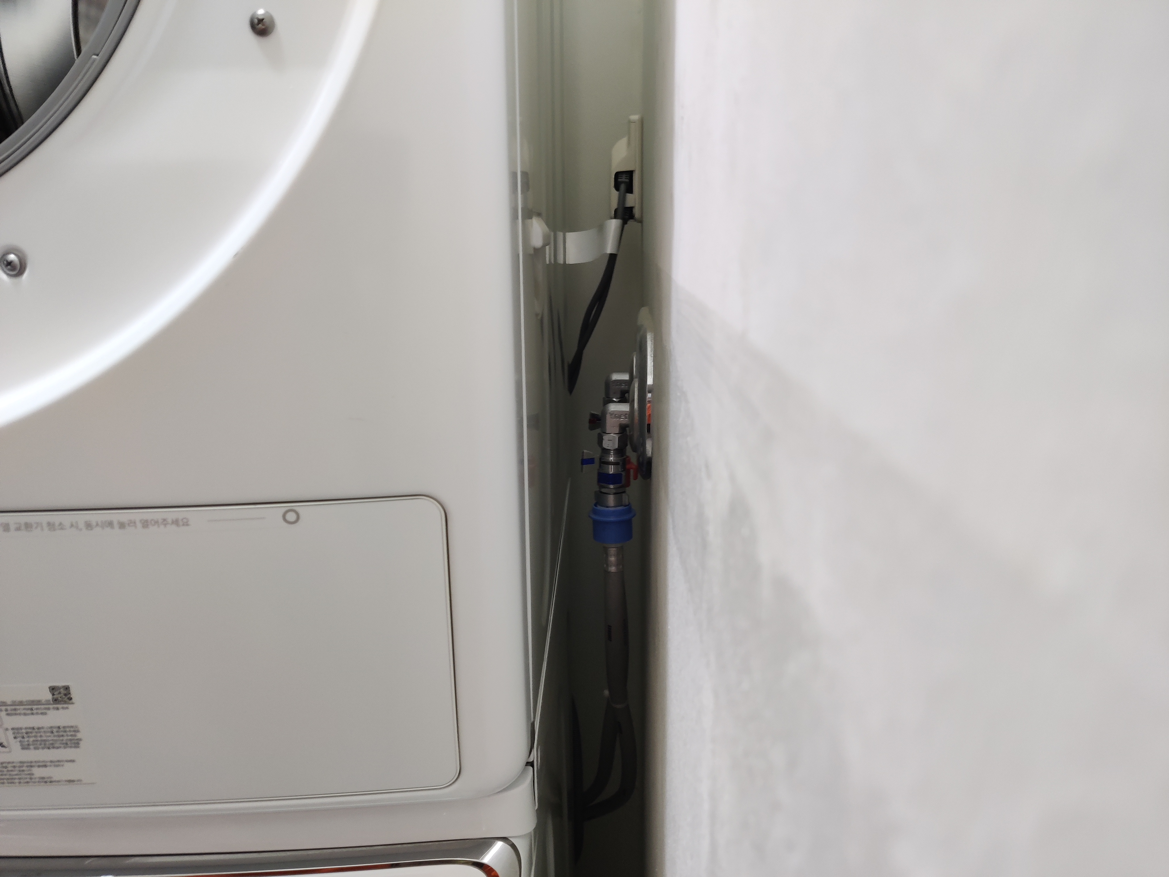 지금 사는 집에 세탁실이 좁은 편이다. 세탁기 자리에 왼쪽에는 보일러, 오른쪽에는 수전이 있다.