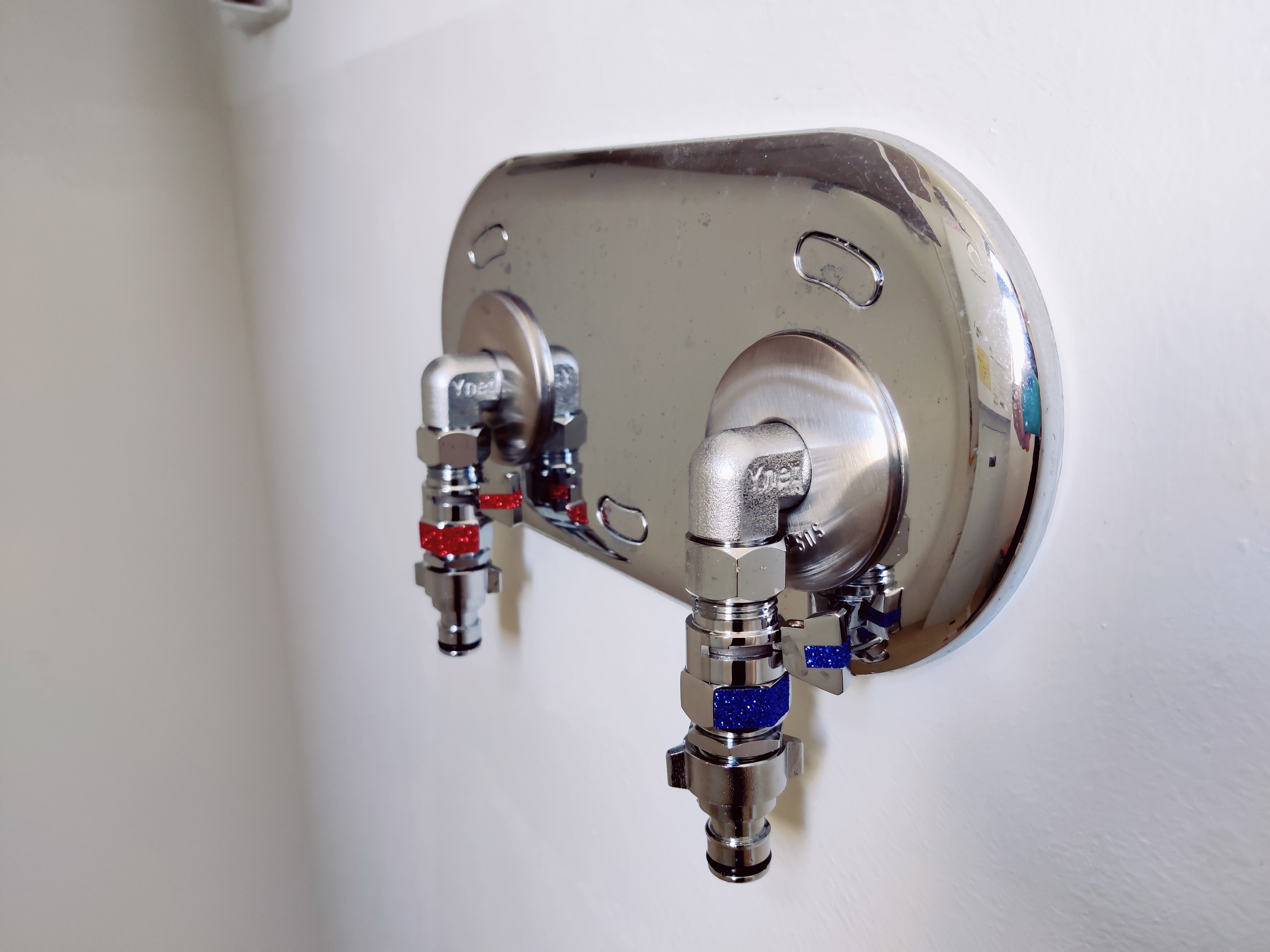 내 기억에 통상 세탁기 건조기가 70cm 정도의 폭을 가지고 있는데, 세탁기용 수도꼭지와 보일러 사이 공간이 67cm 정도밖에 안나왔던 것으로 기억한다. 3cm라고 생각할 수 있겠으나 실제 건조기의 움직임과 발열 등을 생각하면 좌우로 최소 몇센치의 간격이 필요하기 때문에 수전을 변경하지 않고는 건조기를 쌓을수가 없는 상태였다.