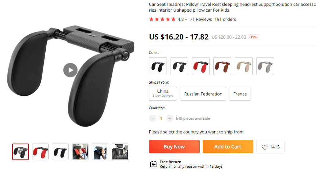 예전에 누가 사용한다고 알고 있었던 헤드레스트 목받침대가 알리에서 5일배송 상품에 나와 있었다.