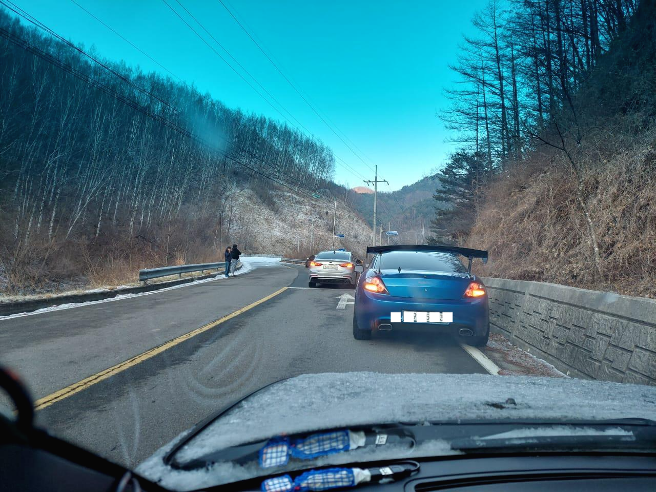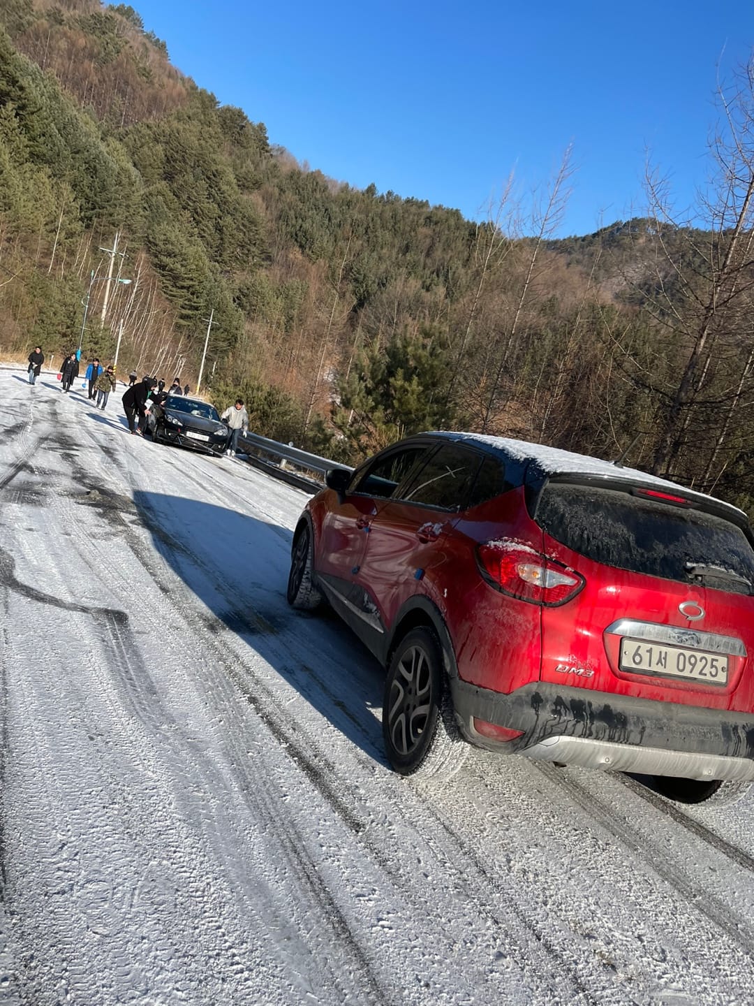 몇대는 올라가본다고 도전했다 내려오고, 어떤 차량은 올라가다 미끄러져서 가드레일에 비볐다는 소식도 들려왔다..