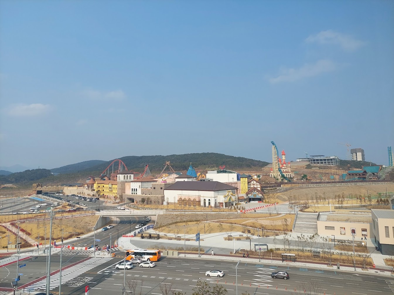 좌측의 자이언트디거(88열차)가 눈에 띄고, 그 오른쪽에 자이언트 스윙이 보인다. 더 오른쪽에 우주발사대처럼 생긴 것은 자이언트 스플래시로.. 물벼락 맞는 어트렉션이다. 여름에 인기 폭발할듯.. 그거 말고도 오거스 후룸이라고 후룸라이드 비슷하게 물과 관련된 놀이기구가 또 있는데, 여기선 잘 안보이는거 같다.