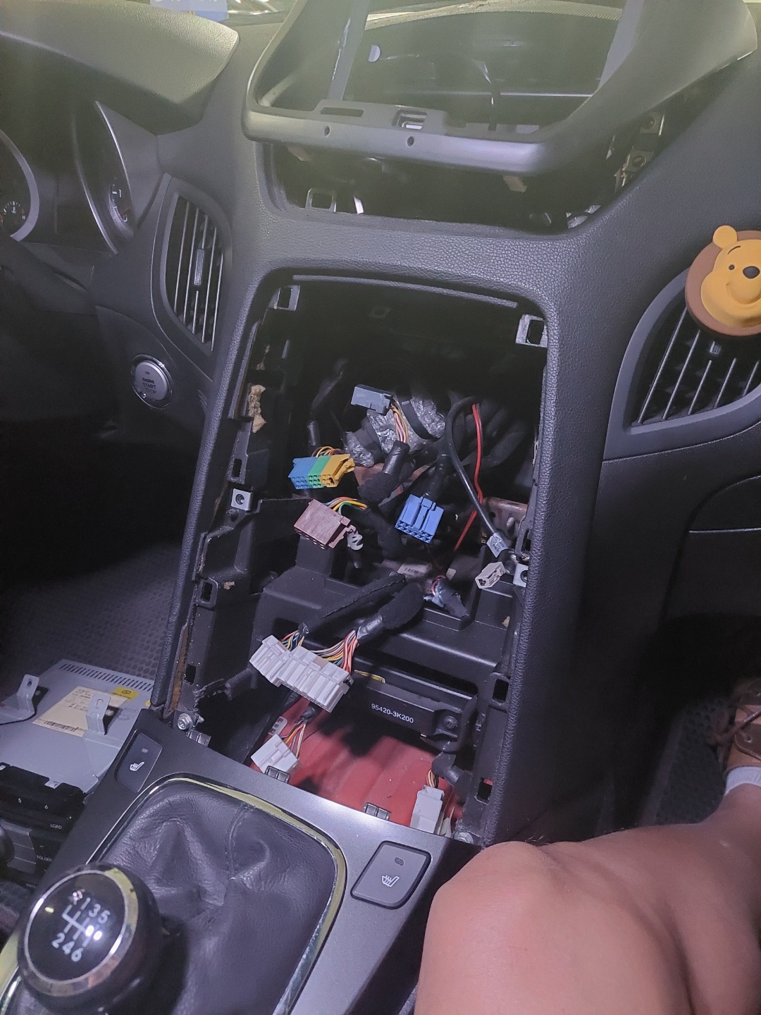 위 좌측 사진에 상단 보이는 네비 마감재 자리이다. 네비를 뜯어내고 과거 있던 네비자리에 안쓰는 배선등을 걷어내기 위해 정리하면서 찍은 사진이다. 처음엔 우측사진 처럼 고정을 할 까 하다가 뭔가 없어보여서....