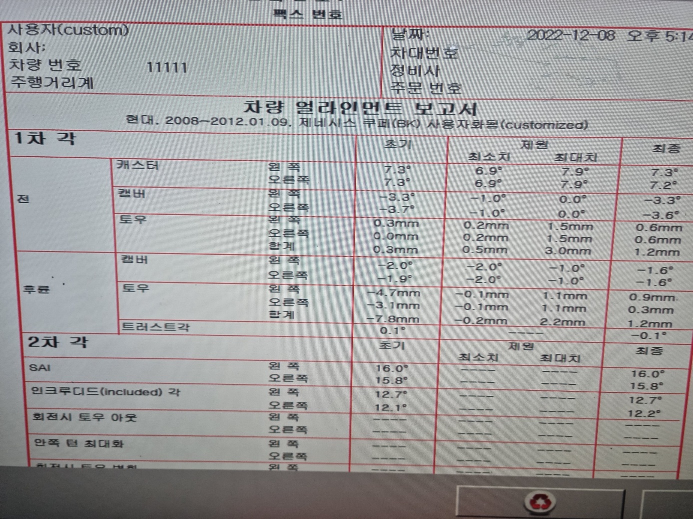 하체를 바꿨으니 얼라이는 당연한것. 얼라이 수치는 참고용 기록으로 남긴다.