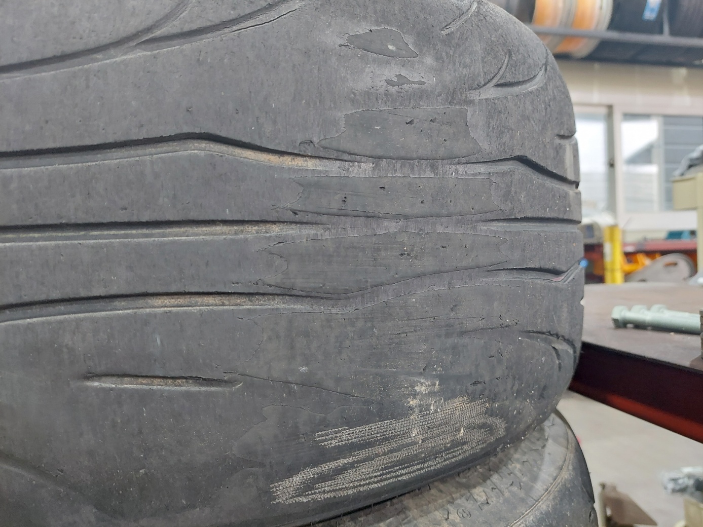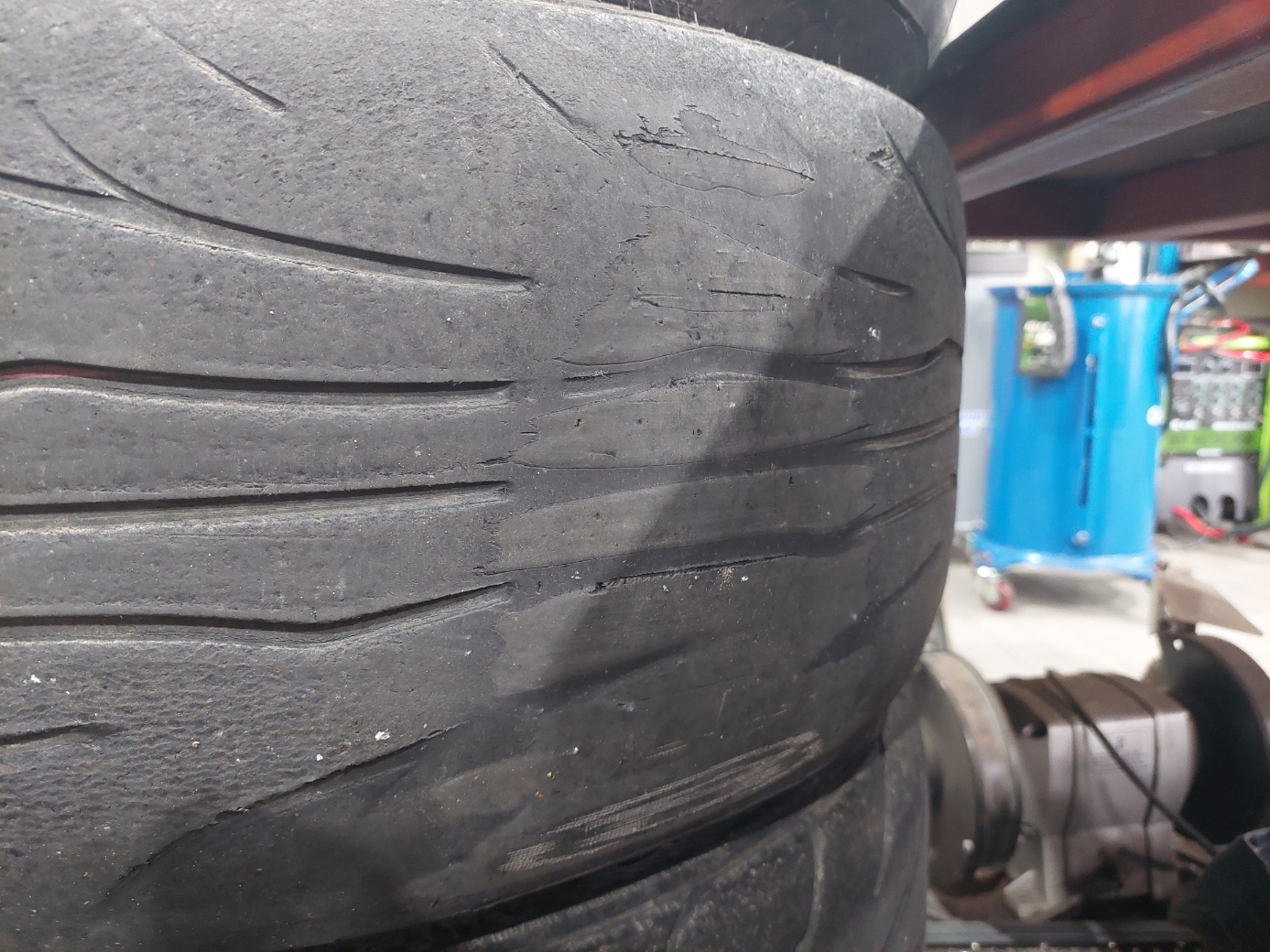 그리고 빼놓은 타이어를 보니 깍두기 상태가 ㄷㄷ.. 이상태로 잘도 부산까지 왔다.