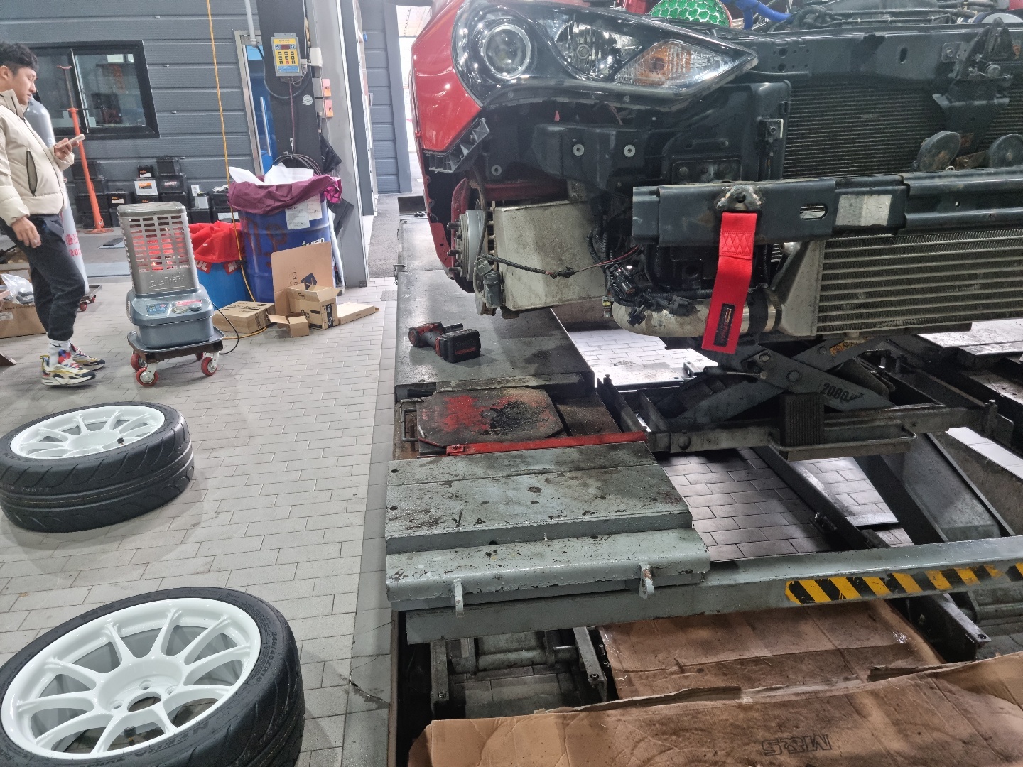 11월 WMR 트렉데이에서 태백 1코 버지에 우당탕 한 이후 차를 집에 세워두고 있다가, 타이어 문제랑 조향 문제가 있는거 같아서 무리하지 않고 어부바로 차만 먼저 명성모터스에 보냈다.