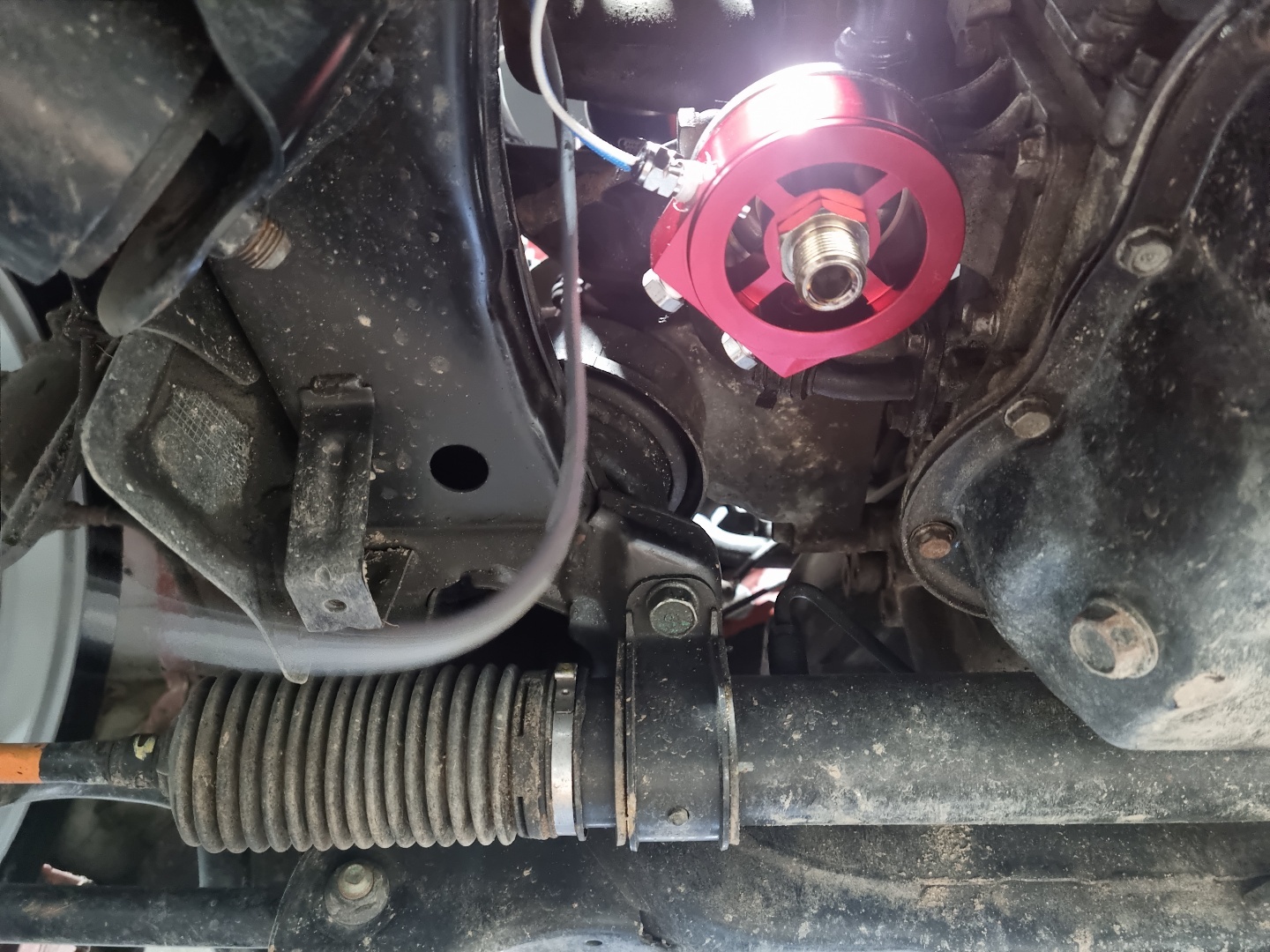 하체 점검 결과 부싱류들 상태도 오래된 상태였는데, 흙더미까지 끼이면서 아무래도 하체 파츠들 좀 교체를 하는게 어떻겠냐고 하셔서 OK 수락. 명성에서 해발 800미터에서 퍼온 신선한 강원도 흙을 맞아가면서 하체를 교체해 주셨다.