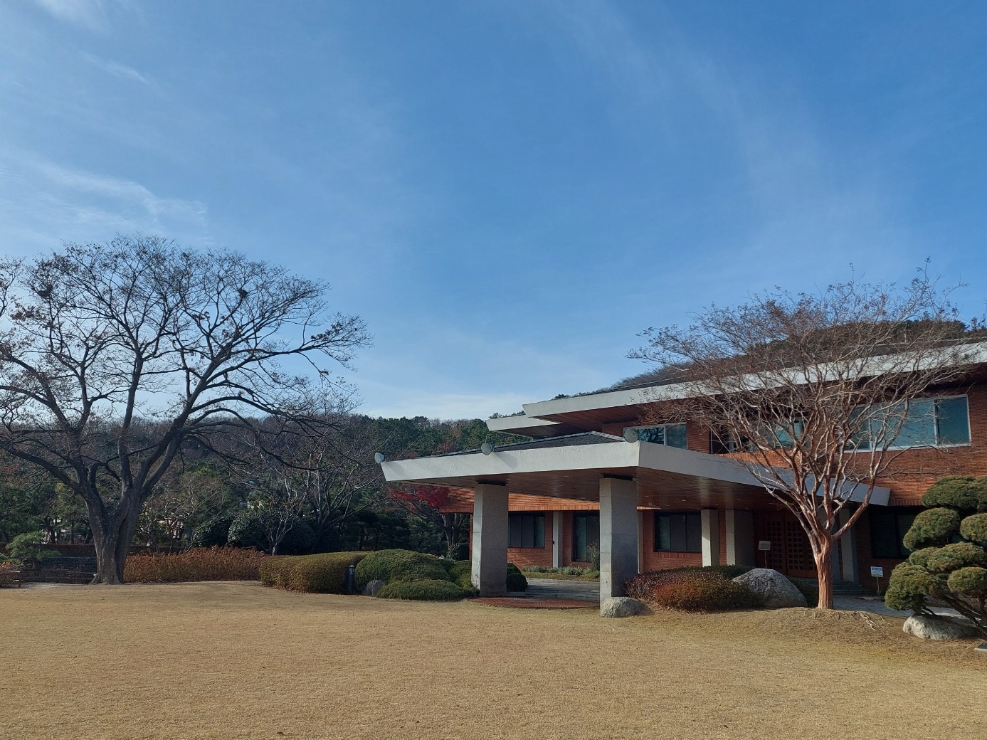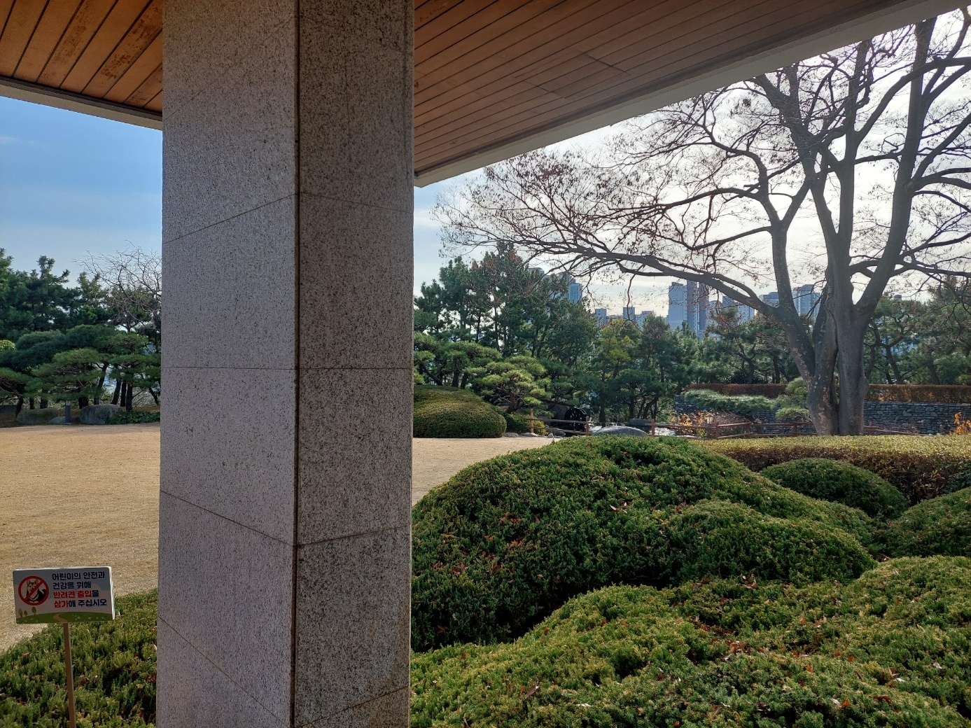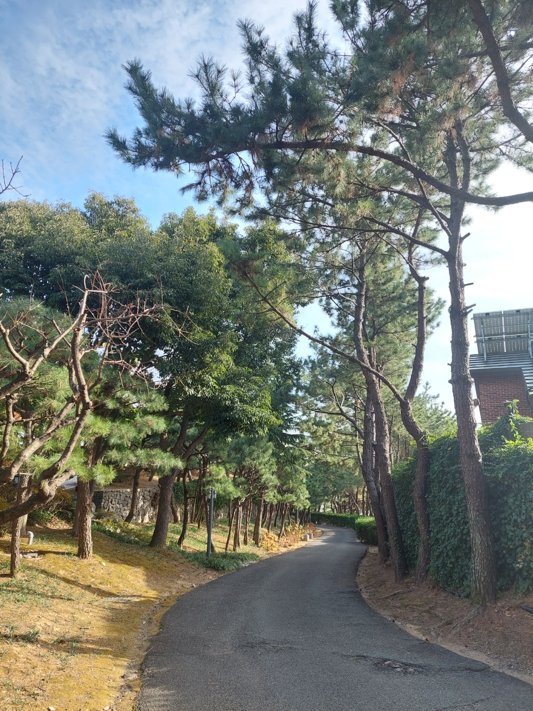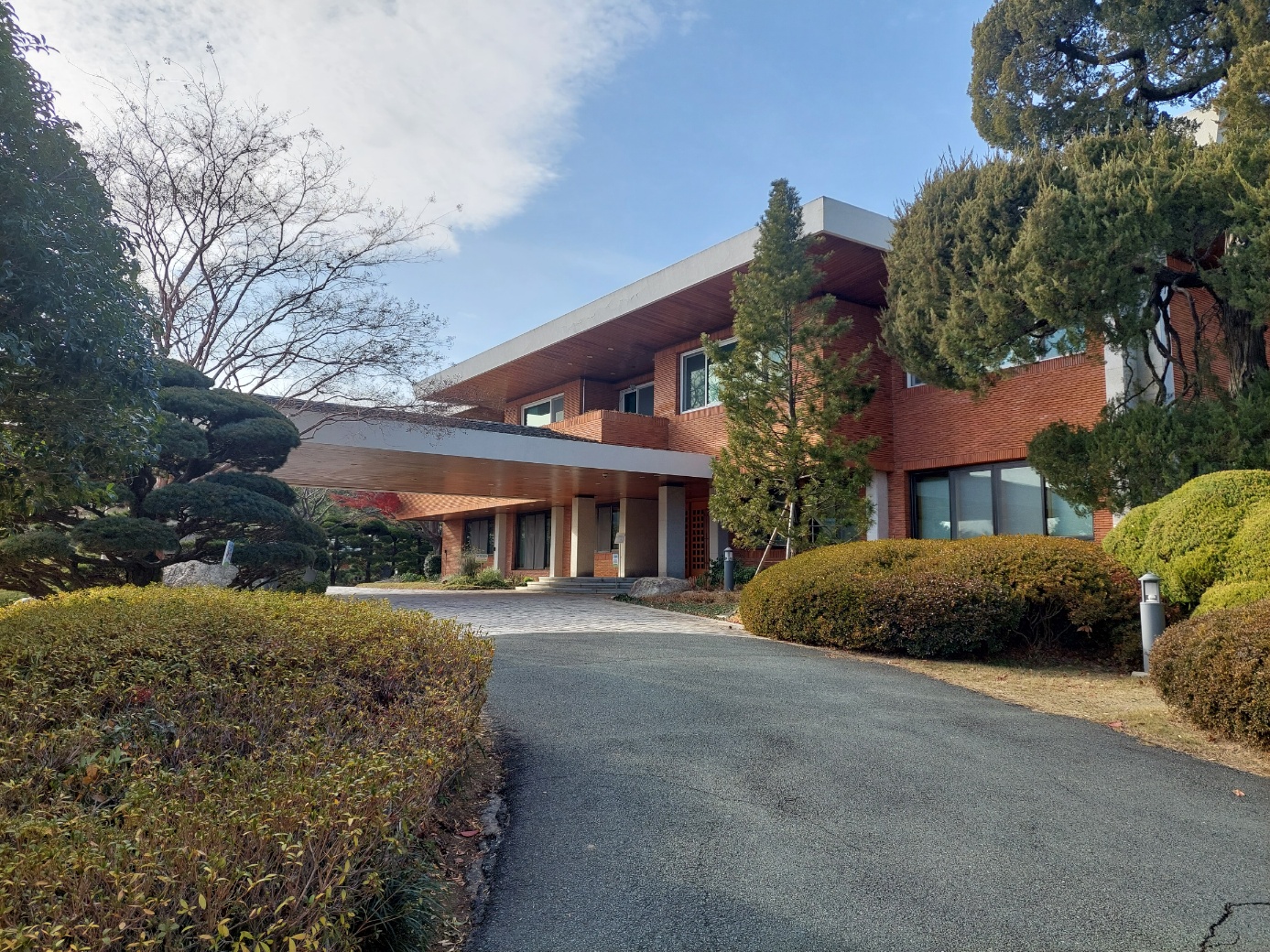 잘 정리된 조경수들이 파란하늘과 잘 어울렸다.
