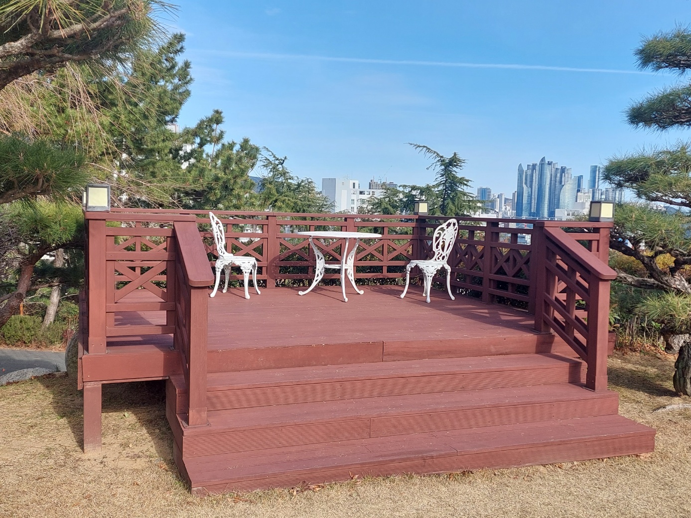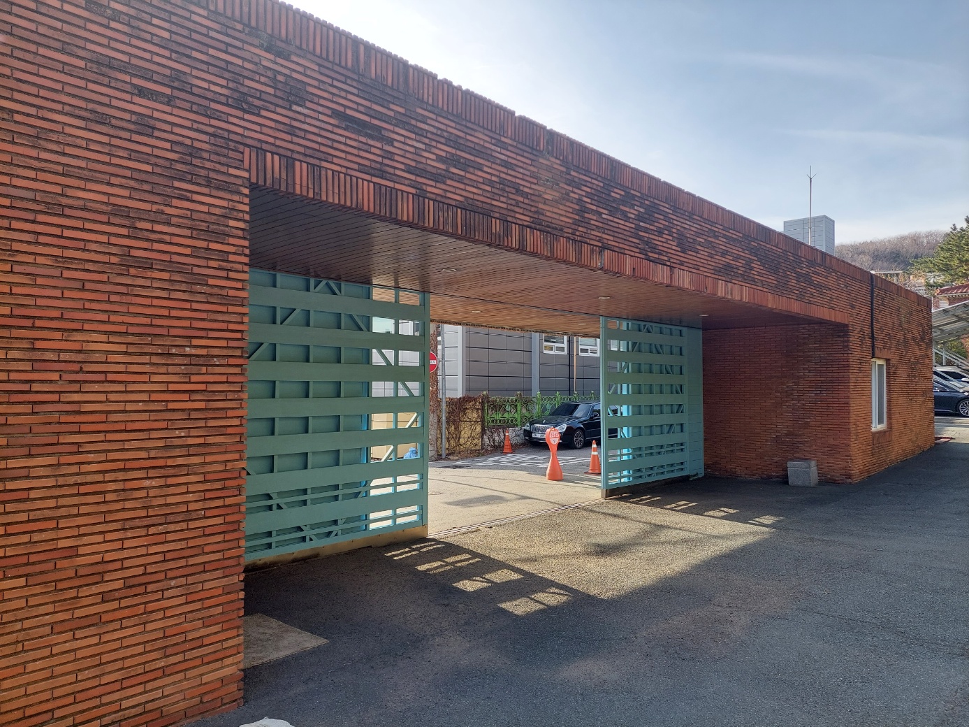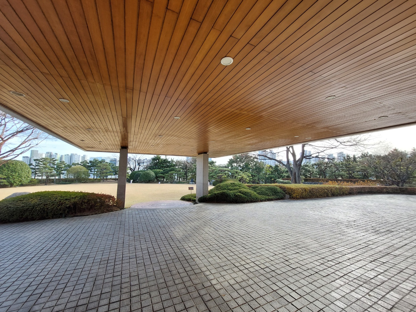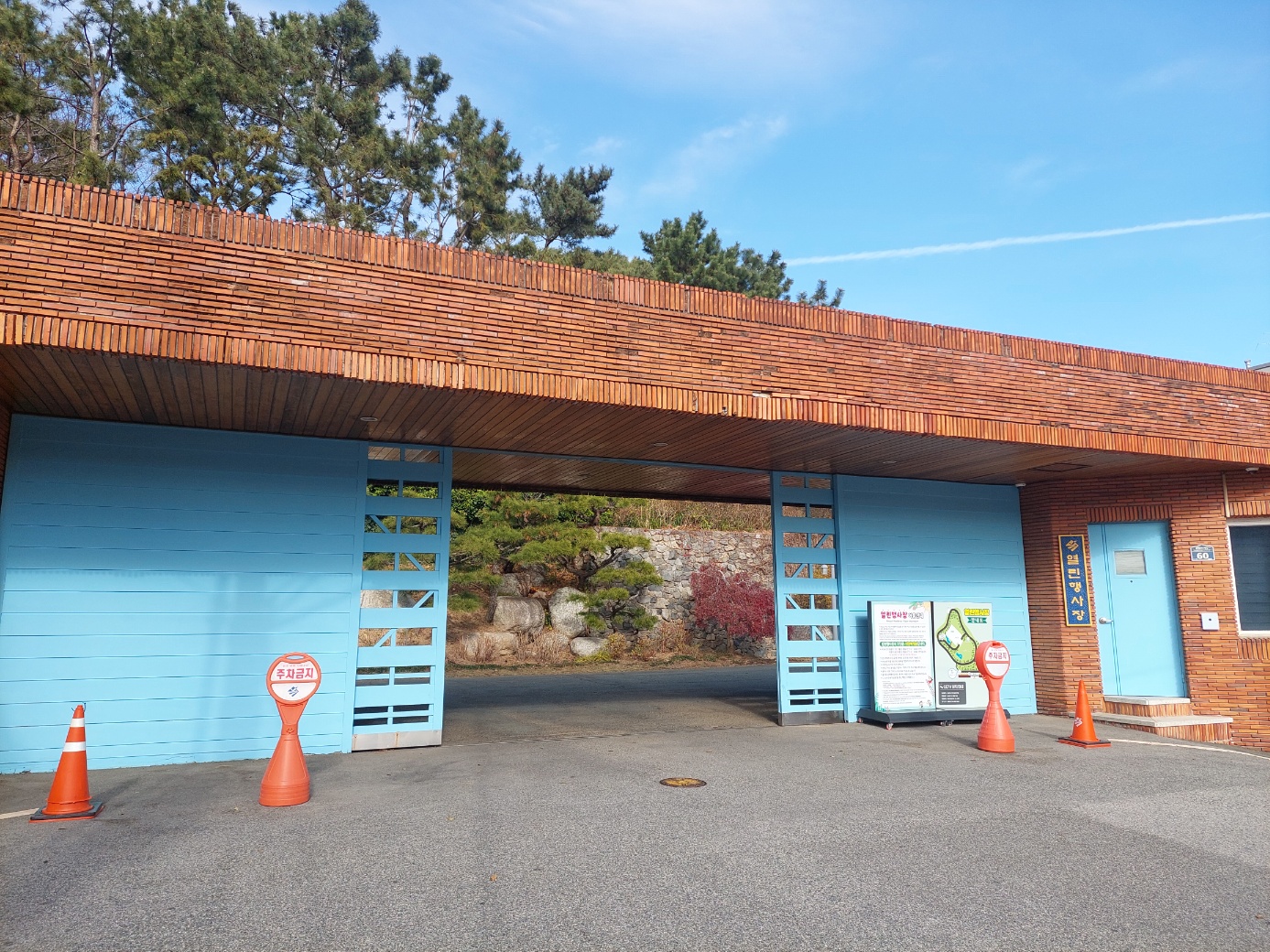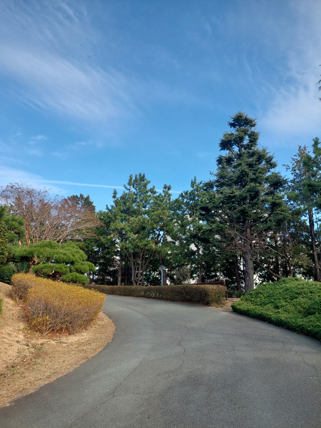 잘 정리된 조경수들이 파란하늘과 잘 어울렸다.