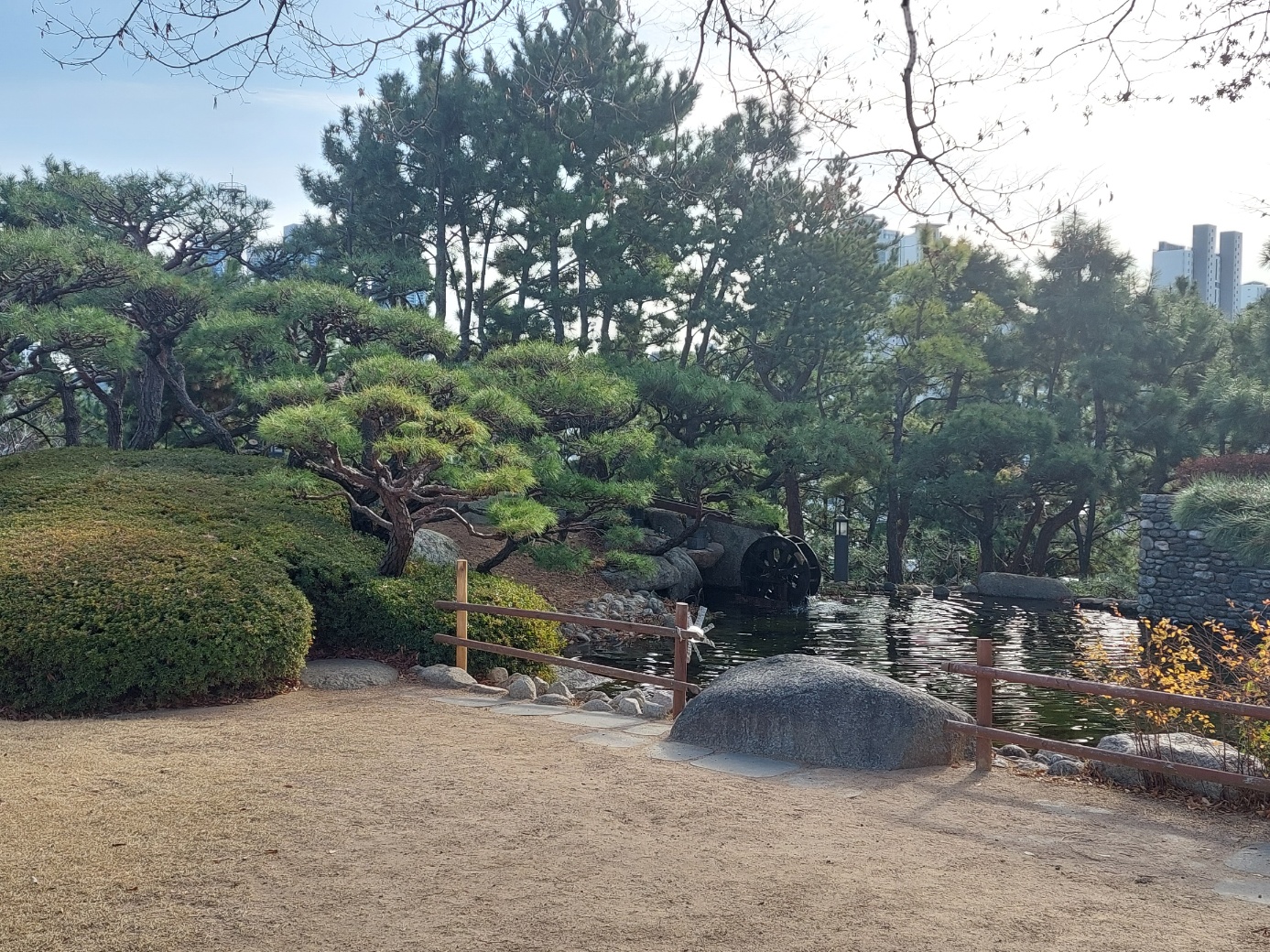 드라마엔 이 연못 근처에 하얀 테이블과 의자가 있는것으로 보였는데 없길래 드라마 소품이었나 보다 하고 생각하던 찰나..