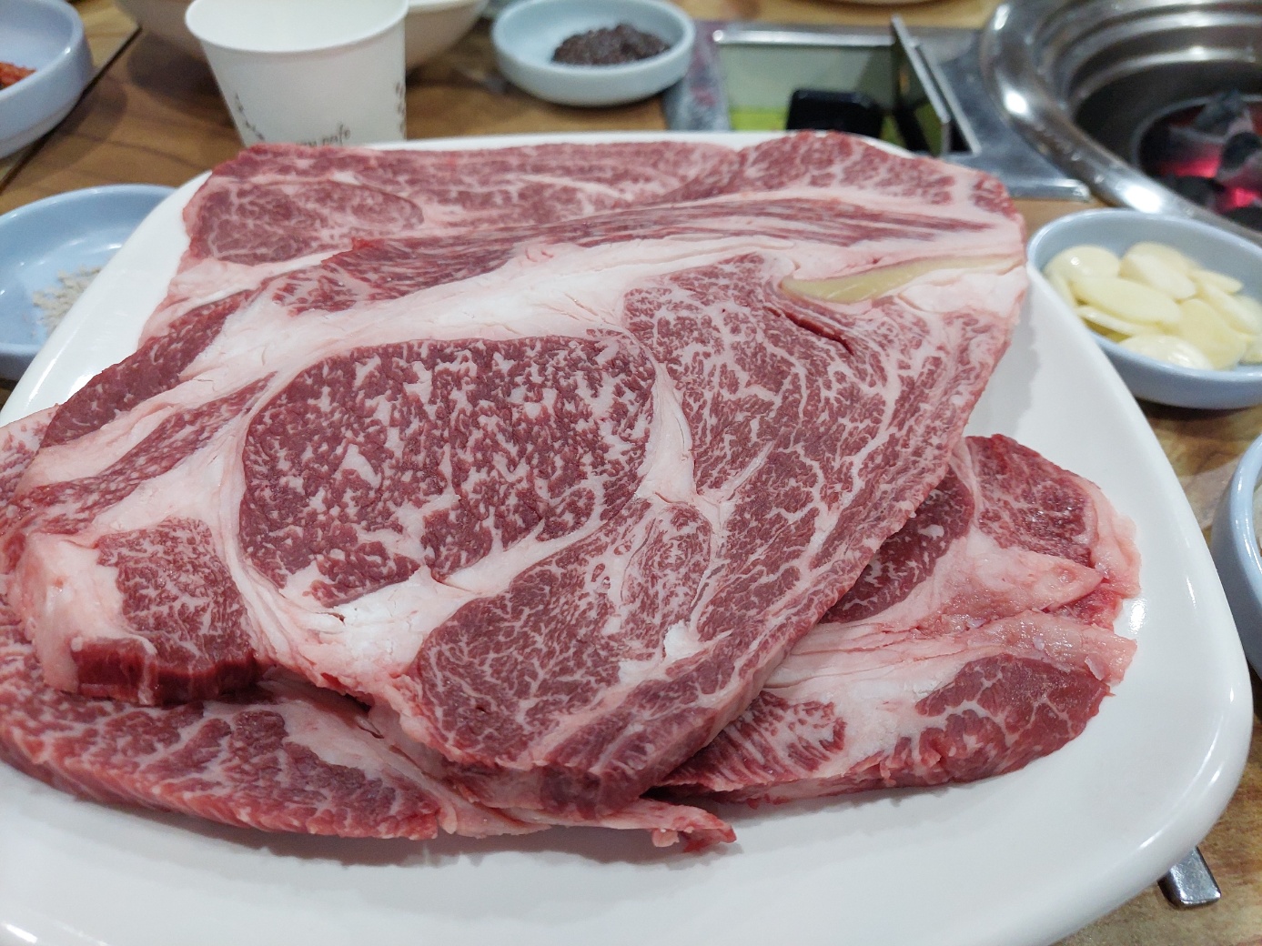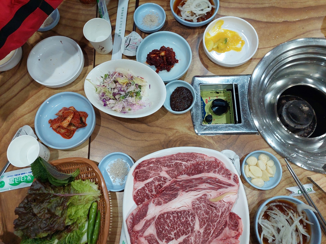 일반적으로 도시에서 저렴한 소고기집이 120g으로 3만원대인데, 여기는 거의 두배에 3만원이다. 내가 고기를 잘 아는 사람이 아니라서 꽃등심이 아니거나 투쁠이 아닐수도 있겠지만, 맛은 훌륭했다. 상차림비도 따로 없기때문에 정말 말도안되는 가성비다. 그리고 사진은 제대로 못찍었지만 밑반찬도 매우 풍부하다.