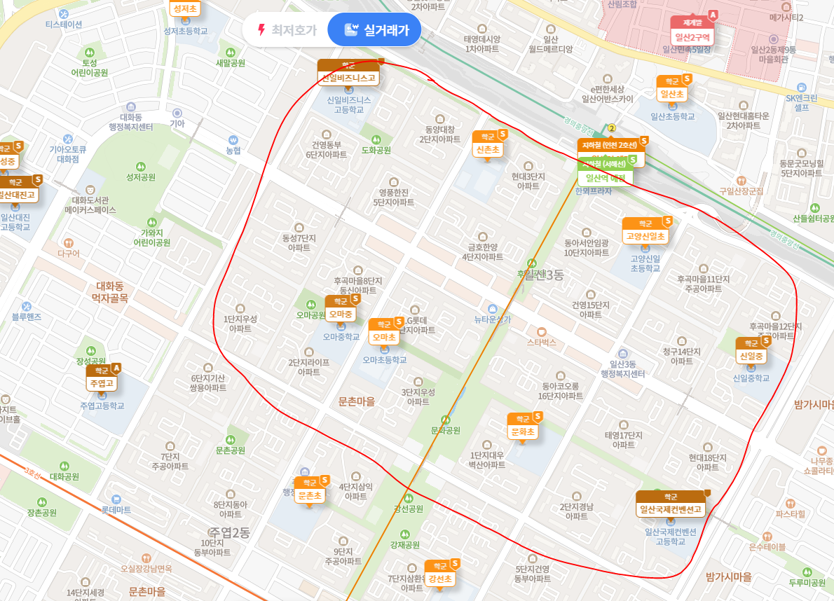 그래서 이번에는 고양시 넘버2 학군인 백마마을을 확인했다.