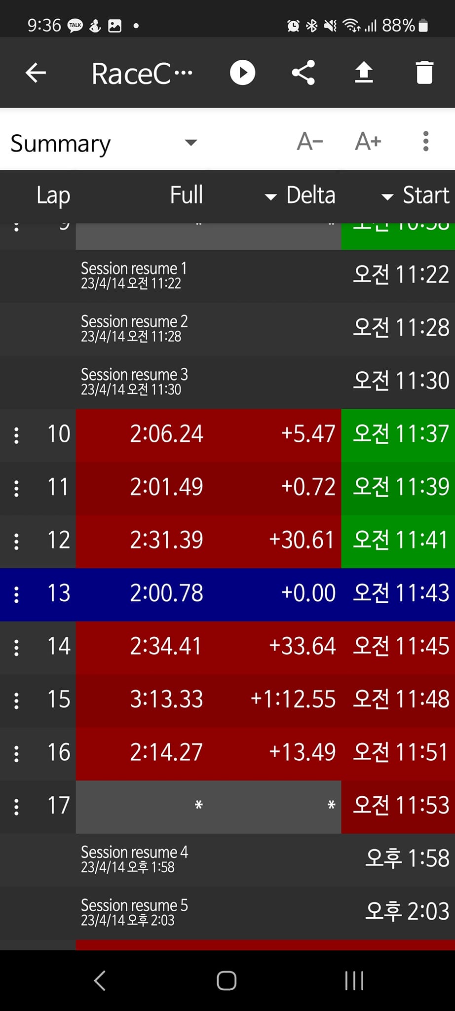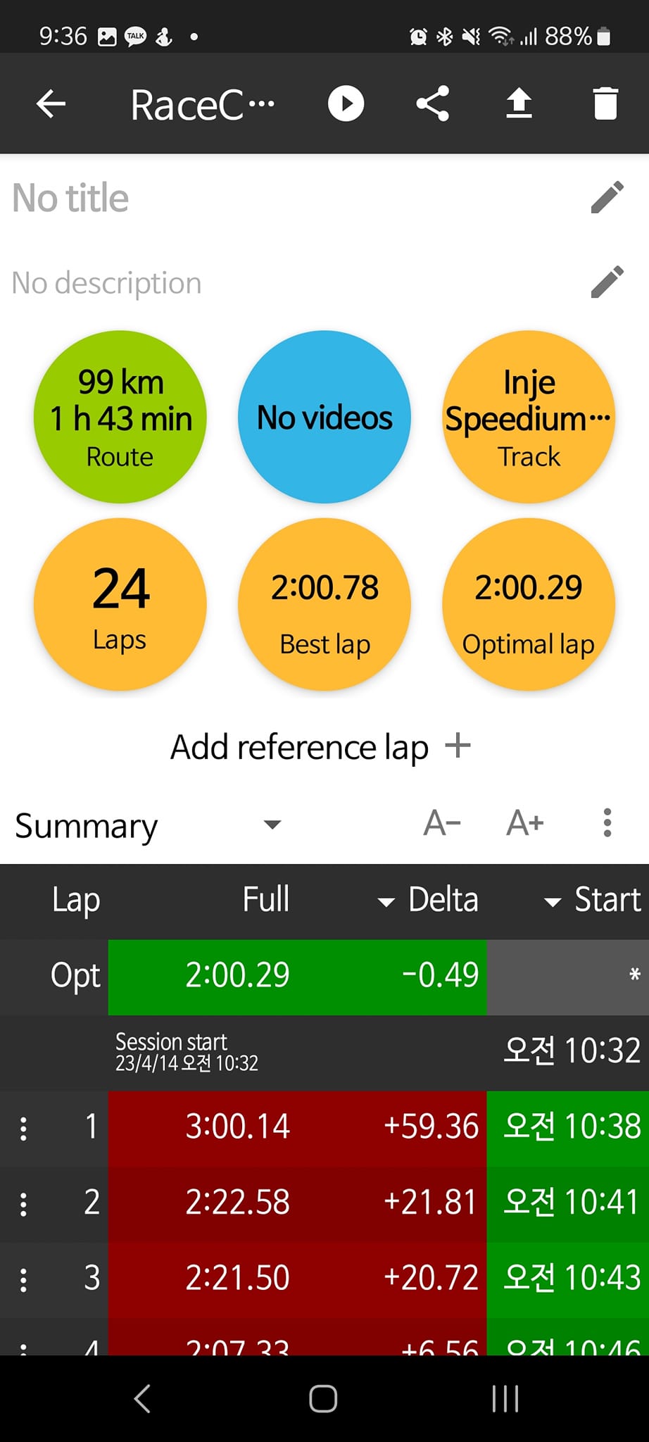 이런 목표를 세워놓고 다녀온 결과는 2분플랫, 2차목표까지만 달성했다. 아직 마진을 상당히 많이 주고 타고 있어서 이 정도이나 익숙해지면 2초 정도는 쉽게 줄일 수 있을 것 같다.