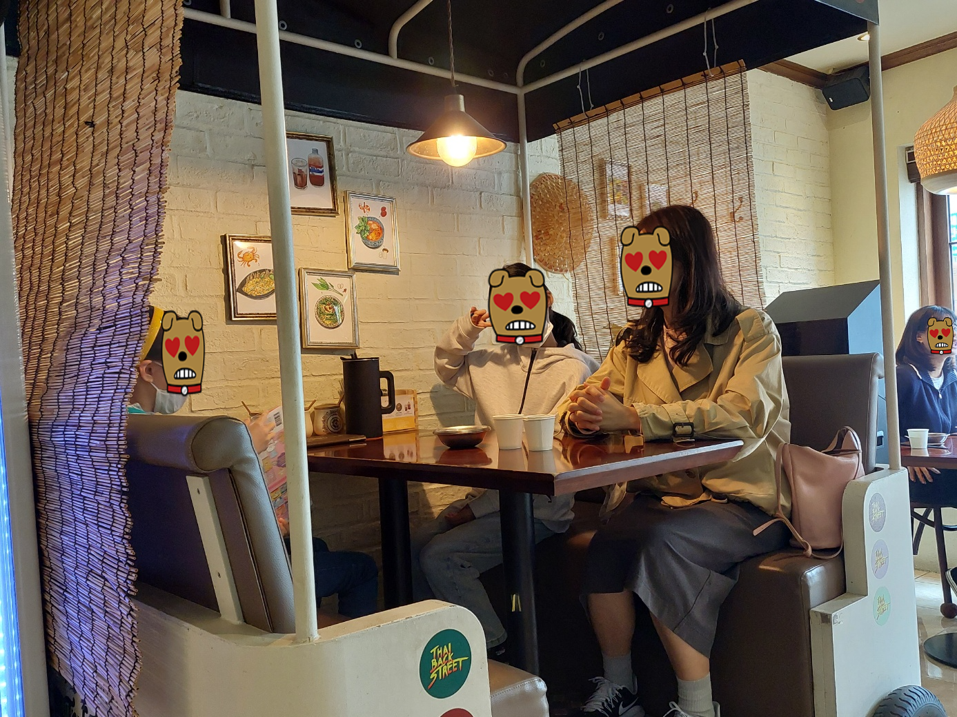 다 둘러보고 나와서 밥을 먹으러 갔는데, 해리단길이 워낙 핫플이라서 그런지 대부분의 식당에 웨이팅이 있었다. 일식 라멘집은 대기가 47팀이라고 나와있어서 뜨악하고 그 건너편에 있는 타이백스트리트(Thai Back Street)에 한 팀만 웨이팅 중이라 얼른 테이블링 등록하고 기다렸다.