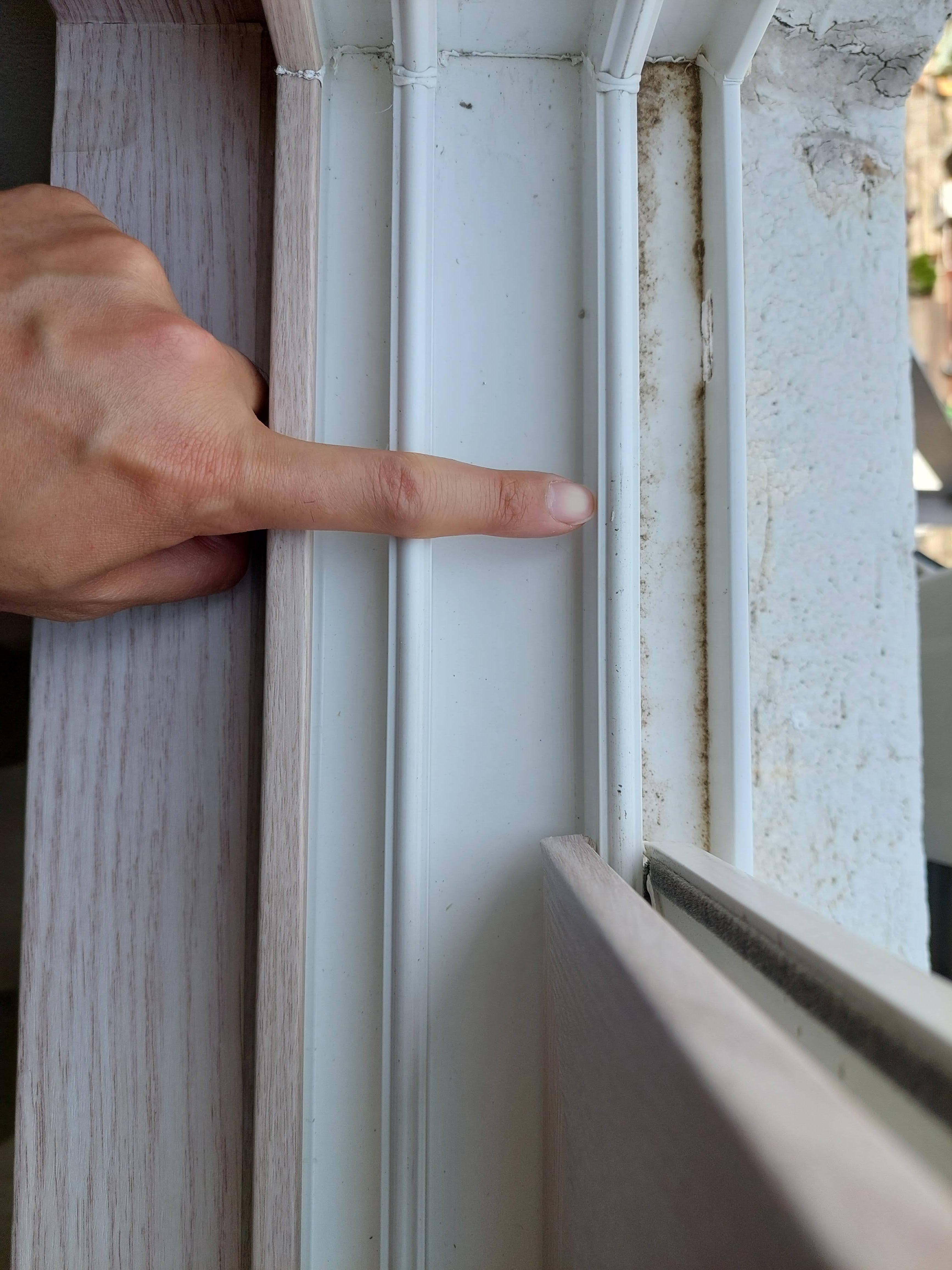 창틀과 창문의 사이인 사진의 부분을 배관단열제를 끼우게되면 샤시의 차폐력이 상승할 것이라고 생각했고, 길이를 재보니 약 40mm정도가 측정되었던 것 같다.