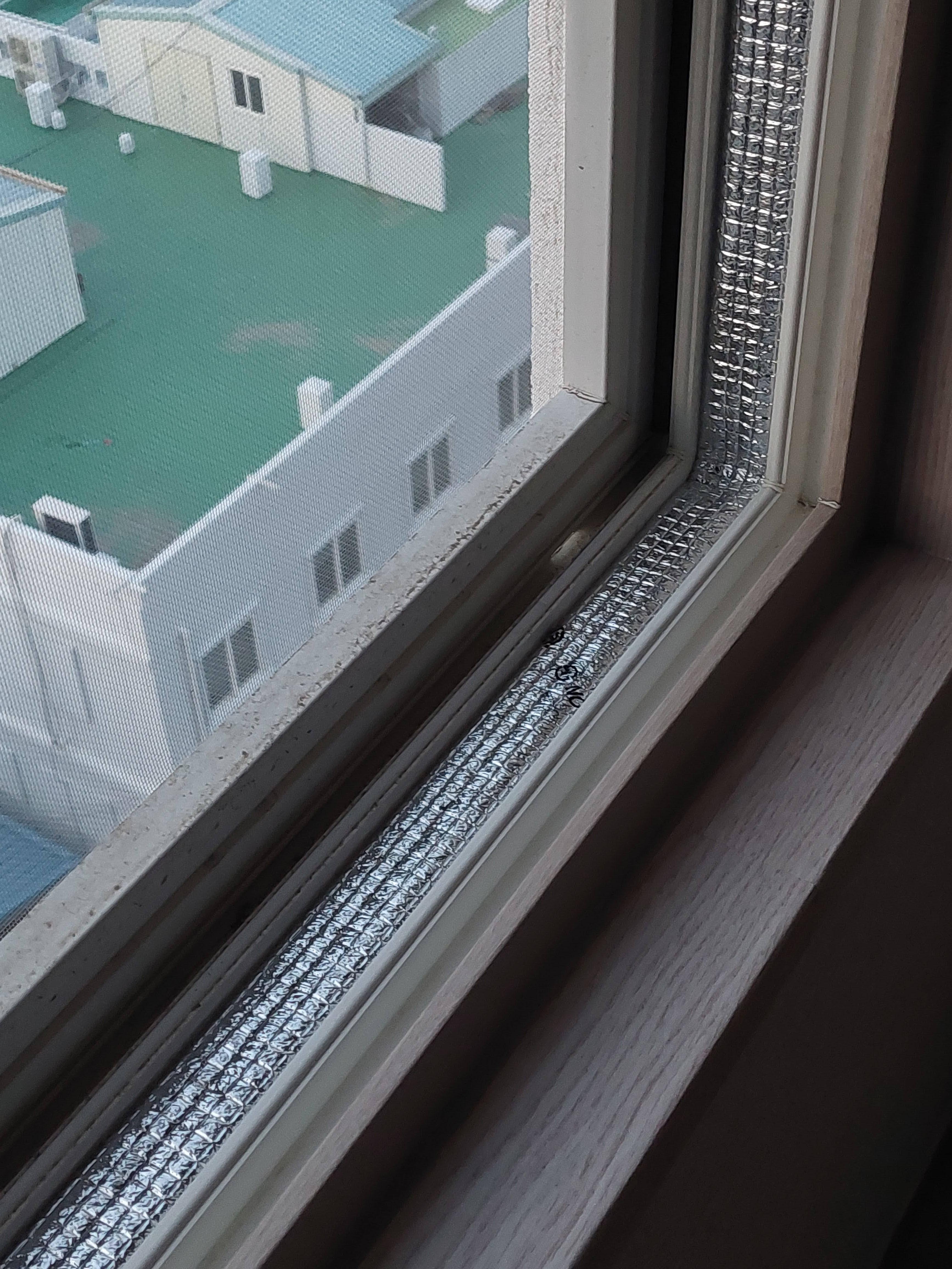 그래서 하나만 까서 스을쩍 끼워보니 정말 주문 제작한 것처럼 딱 맞았다. 그래서 창틀에 슥슥 눌러끼워보니 5분만에 시공 완료
