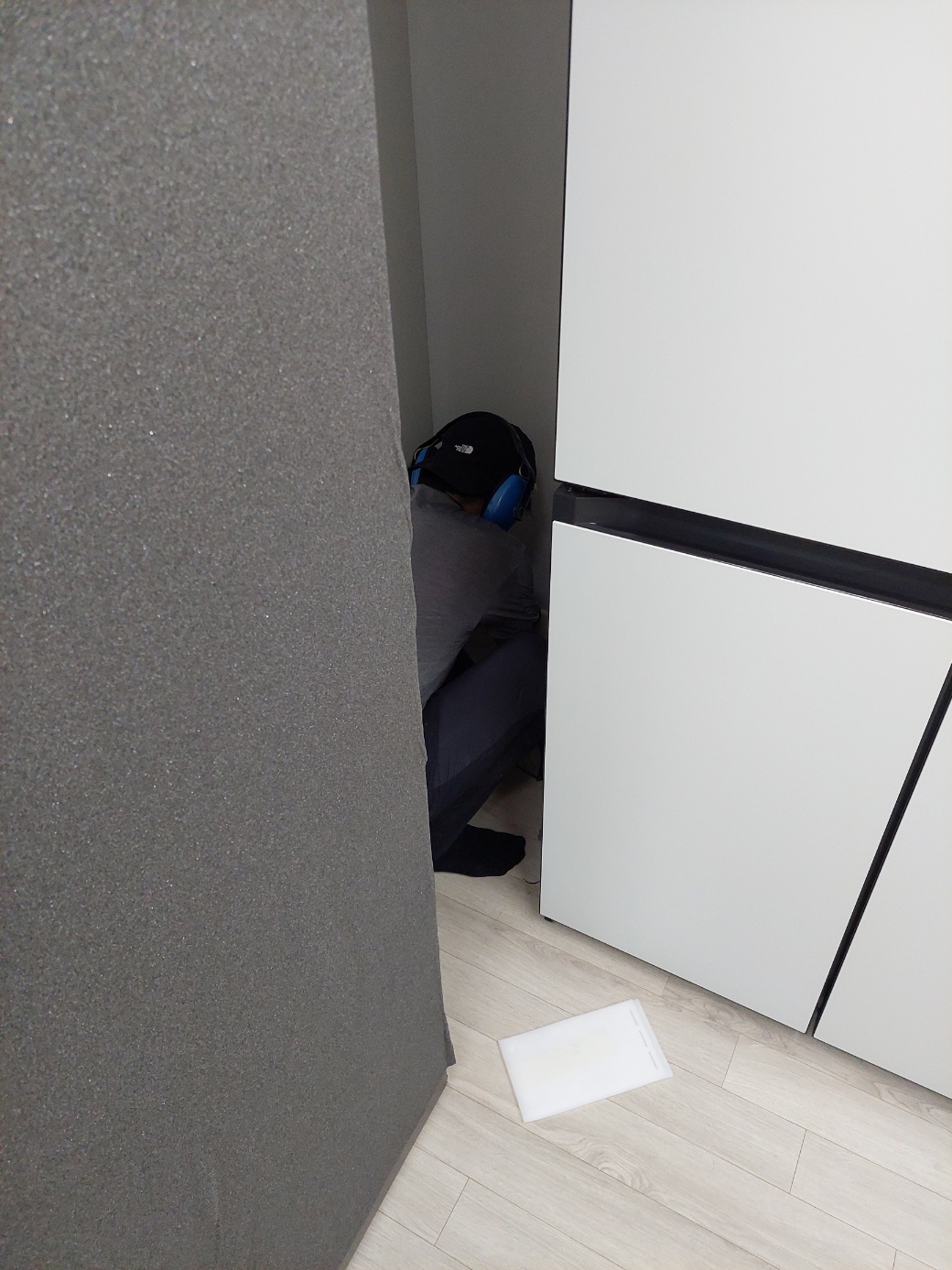 수평 잘 맞춰서 넣어둔 키친핏을 눈물을 머금고 꺼내서 청음탐지 중이신 누수탐지 업체 분들..