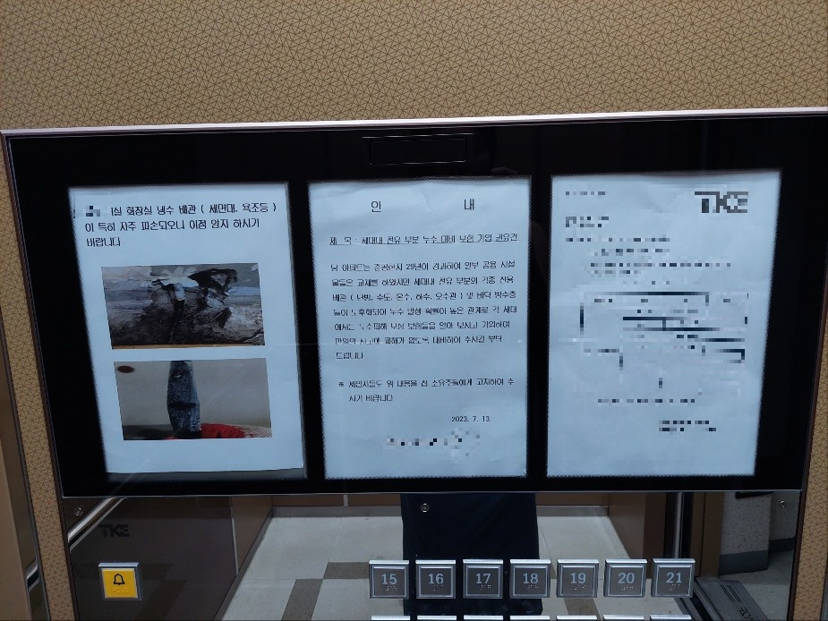 아파트 엘리베이터에 안내문이 붙어있었다.