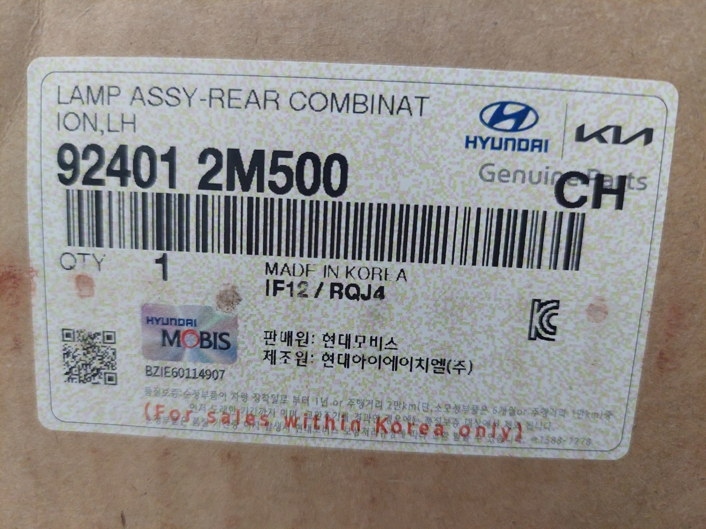 현대아이에이치엘에서 제조한 신쿱 테일램프가 배송이 왔다.