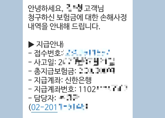 빠른 처리를 위해 새로운 손해사정사에게 필요한 서류를 다시 전달하고 기다리던 중 연락을 한 통 받게된다.