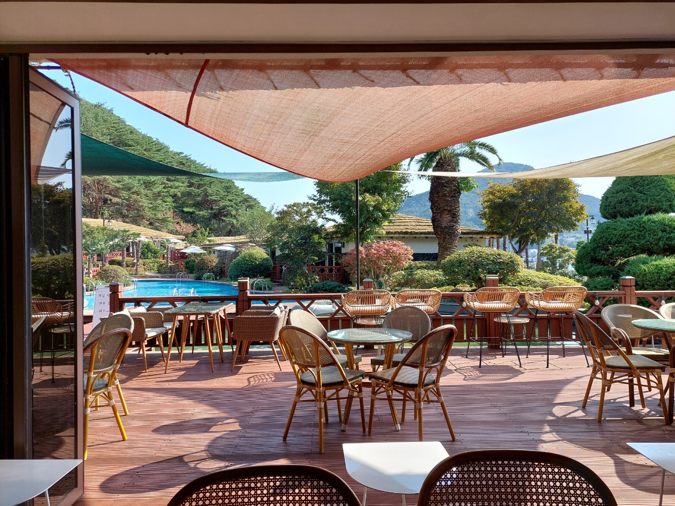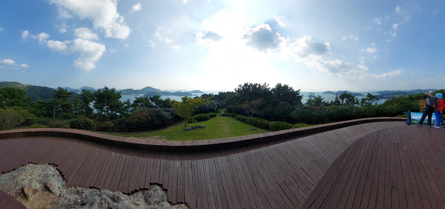 파노라마샷을 찍어서 요렇게 나왔는데 원형으로된 데크이다. 주변 주요 섬들이 한눈에 보인다.