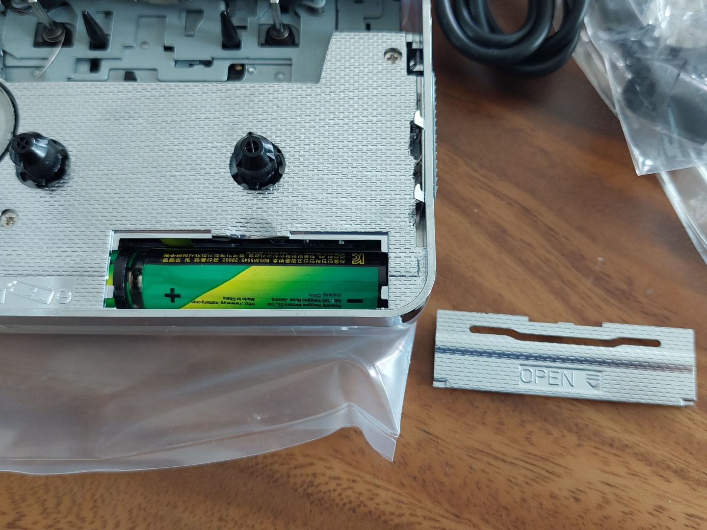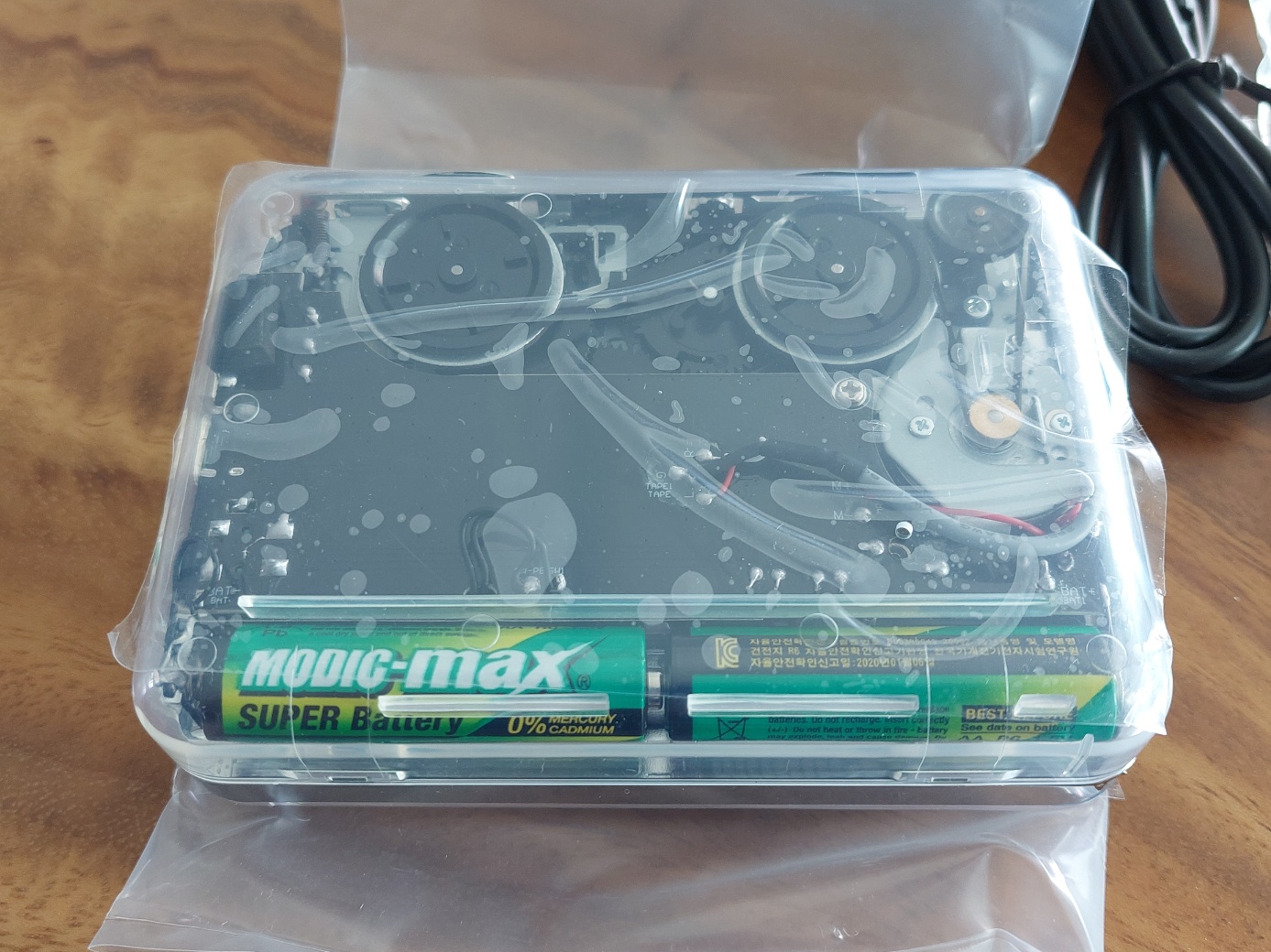 대략적인 외관인 이렇다. 테이프 넣는 커버를 열면 배터리를 넣을 수 있는 캡이 있고, 캡을 열어서 AA 건전지 2알을 넣으면 동작가능하다.