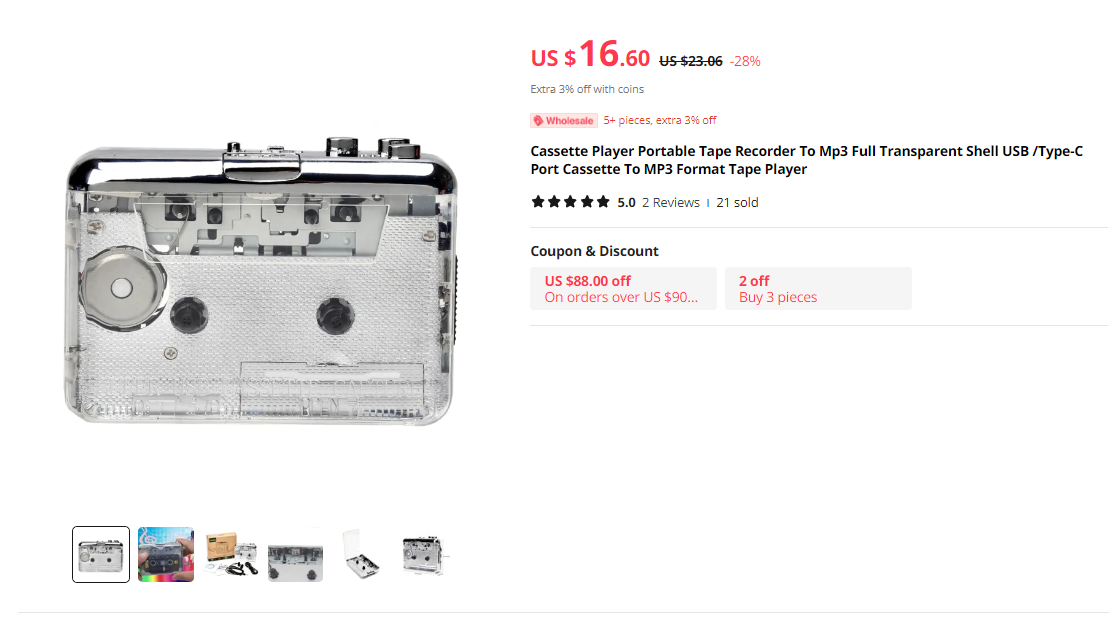 요새는 단순 플레이만 되는게 아니라 USB로 PC에 연결하고 테이프를 디지털 파일로 변환하는 것을 겸하는 장치로 팔고 있는 것 같다.