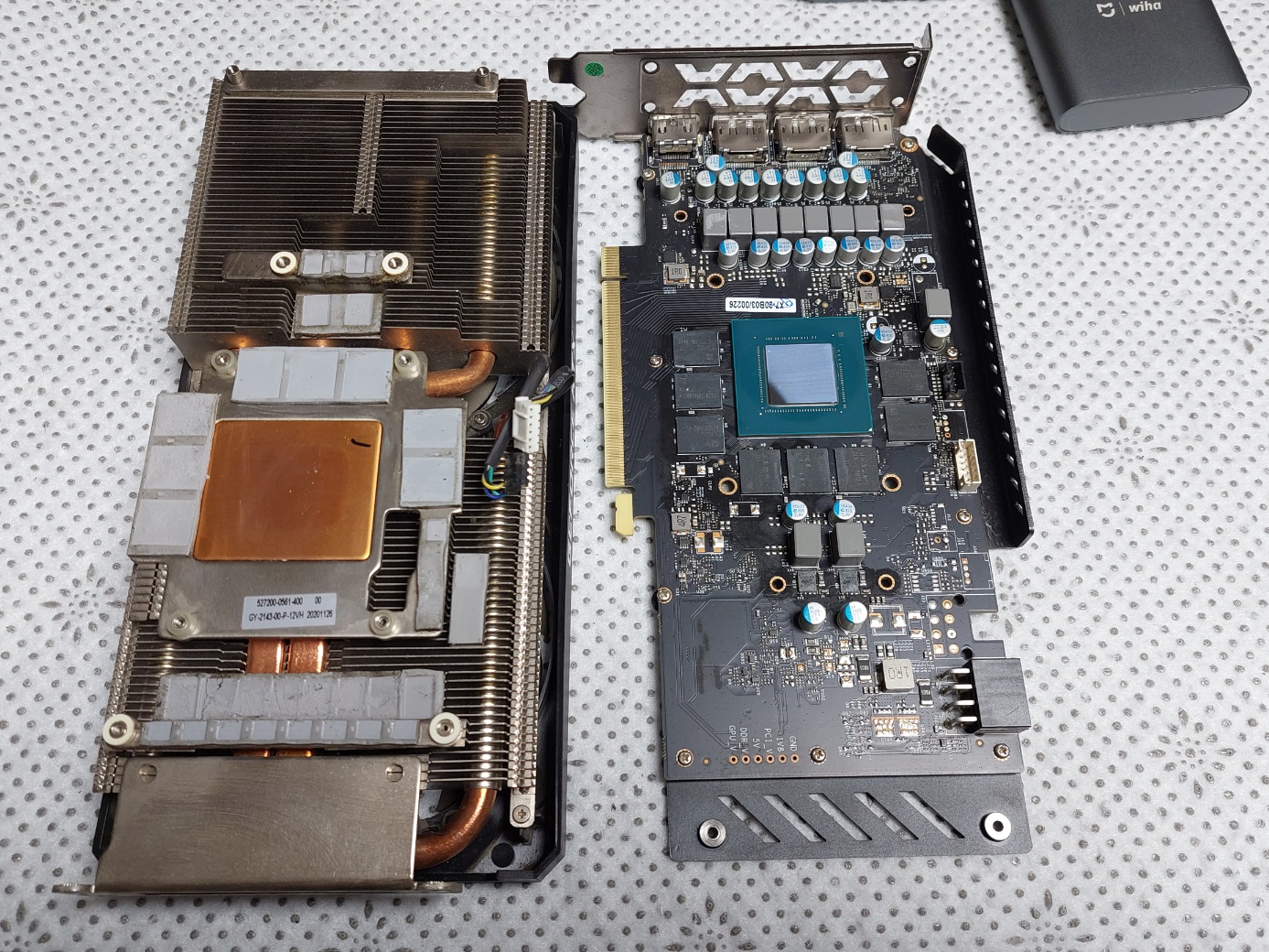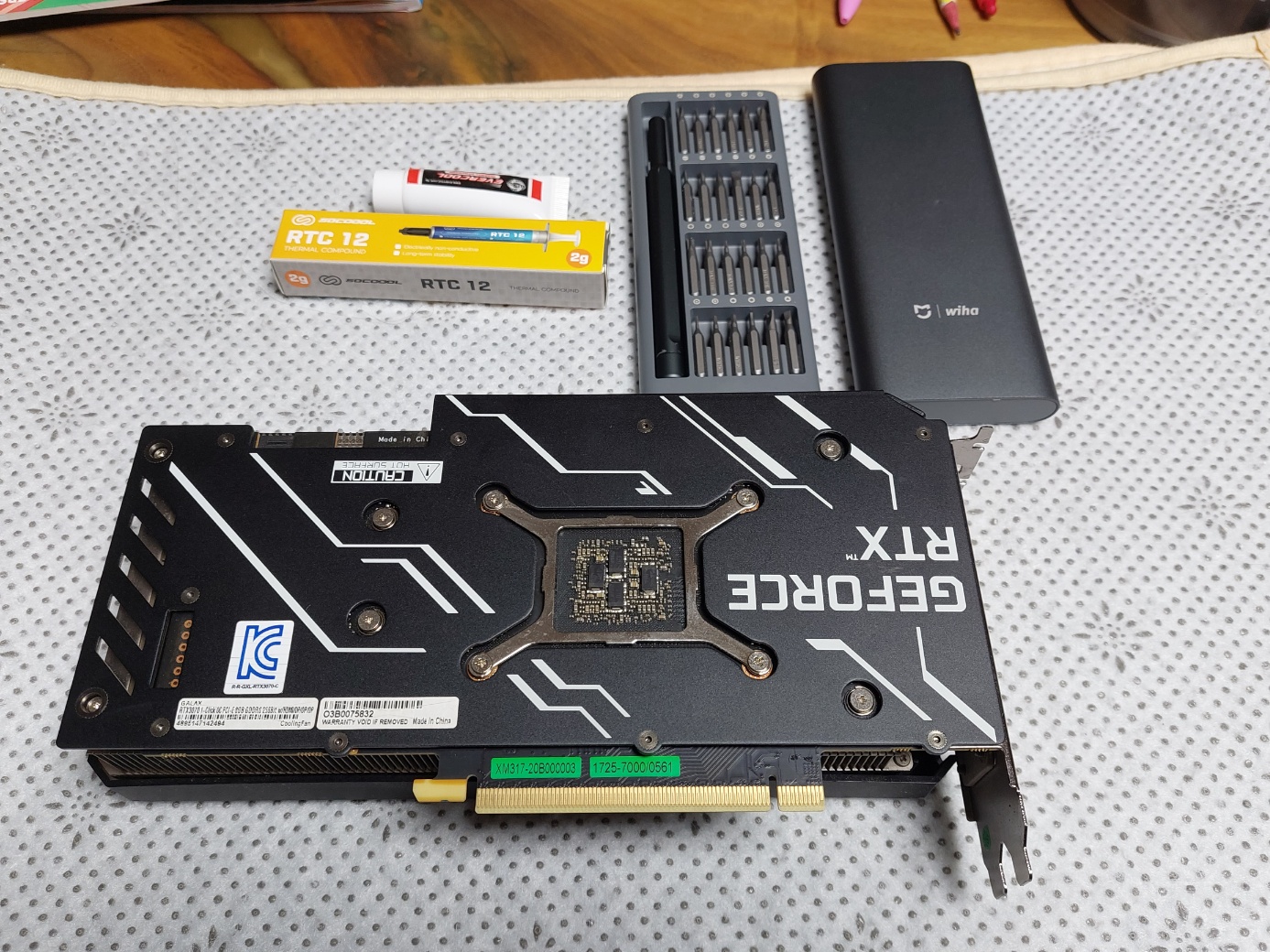 채굴에 사용되었던 그래픽카드이니 아무래도 써멀(재도포)작업은 하는게 좋지 않겠느냐는 동서의 말에 한 번도 해보진 않았지만 최근에 메인보드 변경으로 사두었던 써멀그리스도 있겠다, 약간의 세정을 겸해서 뜯어서 써멀 재도포 작업하기로 마음먹었다.