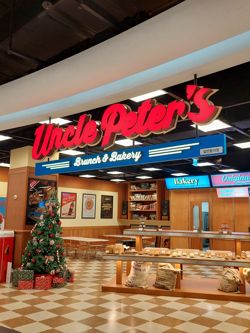 1층에 상당히 크게 자리잡고 있는 브런치/베이커리집이 있었는데, 좌석도 굉장히 많고 80-90's 아메리칸스타일 레스토랑 느낌도 나고해서 잠시 들러봤다. (커피사러 방문)