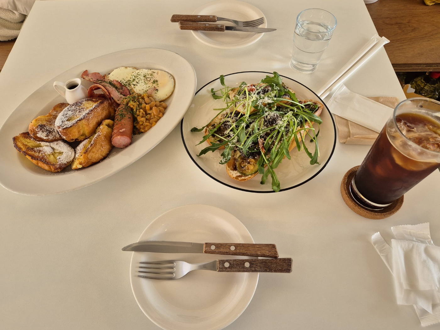 아이스 아메리카노 한잔과 시즌드플래터, 라따뚜이 샌드위치를 시켰다. (사진상 오른쪽부터 아아, 라따뚜이 샌드위치, 시즌드 플래터)