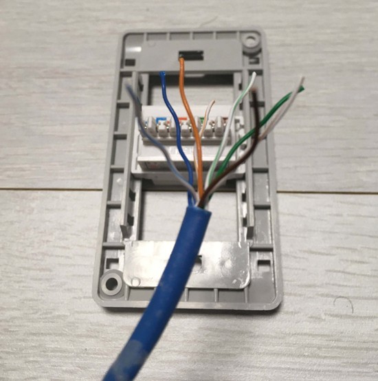 집에 요렇게 생긴 벽부형 랜 콘센트가 있는데 저 키스톤잭에 선을 바로 물려서 테스트를 했더니, 연결이 되지를 않았다. 몇번을 다시 꽂아봐도 안되더라. 그래서 혹시 UTP를 땡겨내다가 어디선가 선이 끊기거나 내부에서 손상을 입은건 아닌지 엄청 걱정을 했다. (이짓을 다시하기 넘나 싫어서+또다른 변수들..)