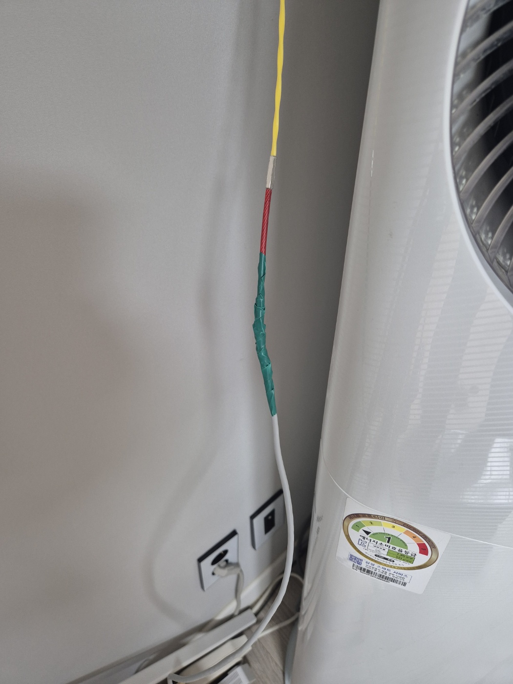 사실 원래는 바닥쪽 전열라인으로 뺄 생각이었는데, 문간방에서 넘어가는 관로에 요비선이 통과를 못했다. 아무리 쑤셔도 안되길래 결국 차선책을 선택하였다. (사실 콘센트때매 걸리적거려서 콘센트 만지다가 0.3초 정도 220v도 먹었다. 짜릿)