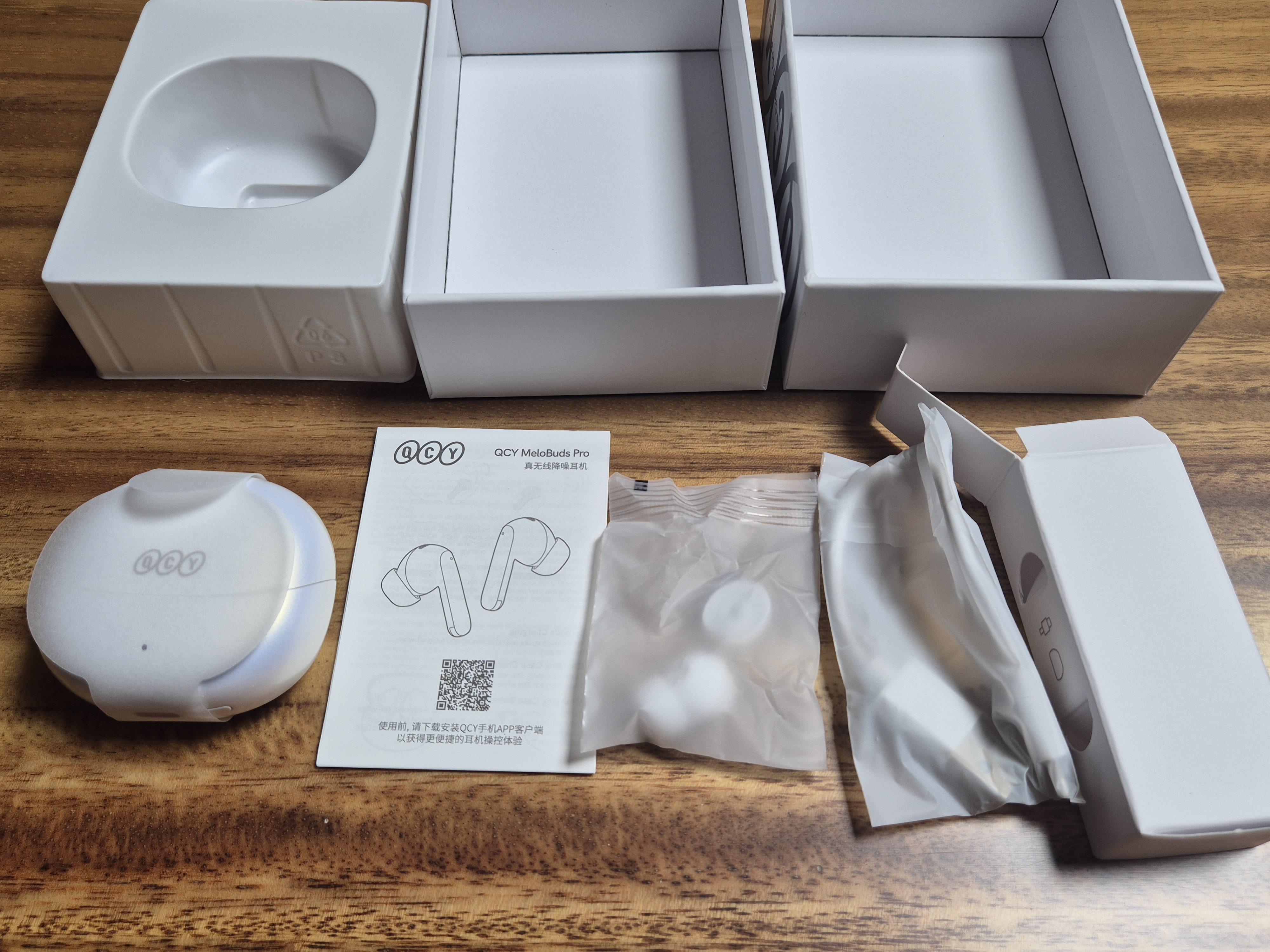 QCY도 워낙 다양한 모델이 있지만 그냥 멜로버즈 프로(MeloBuds Pro)를 구입했다. 가격대로 봤을때 쓸만해보였다. 그리고 일주일만에 배송온 멜로버즈 프로의 사진은 아래와 같다.