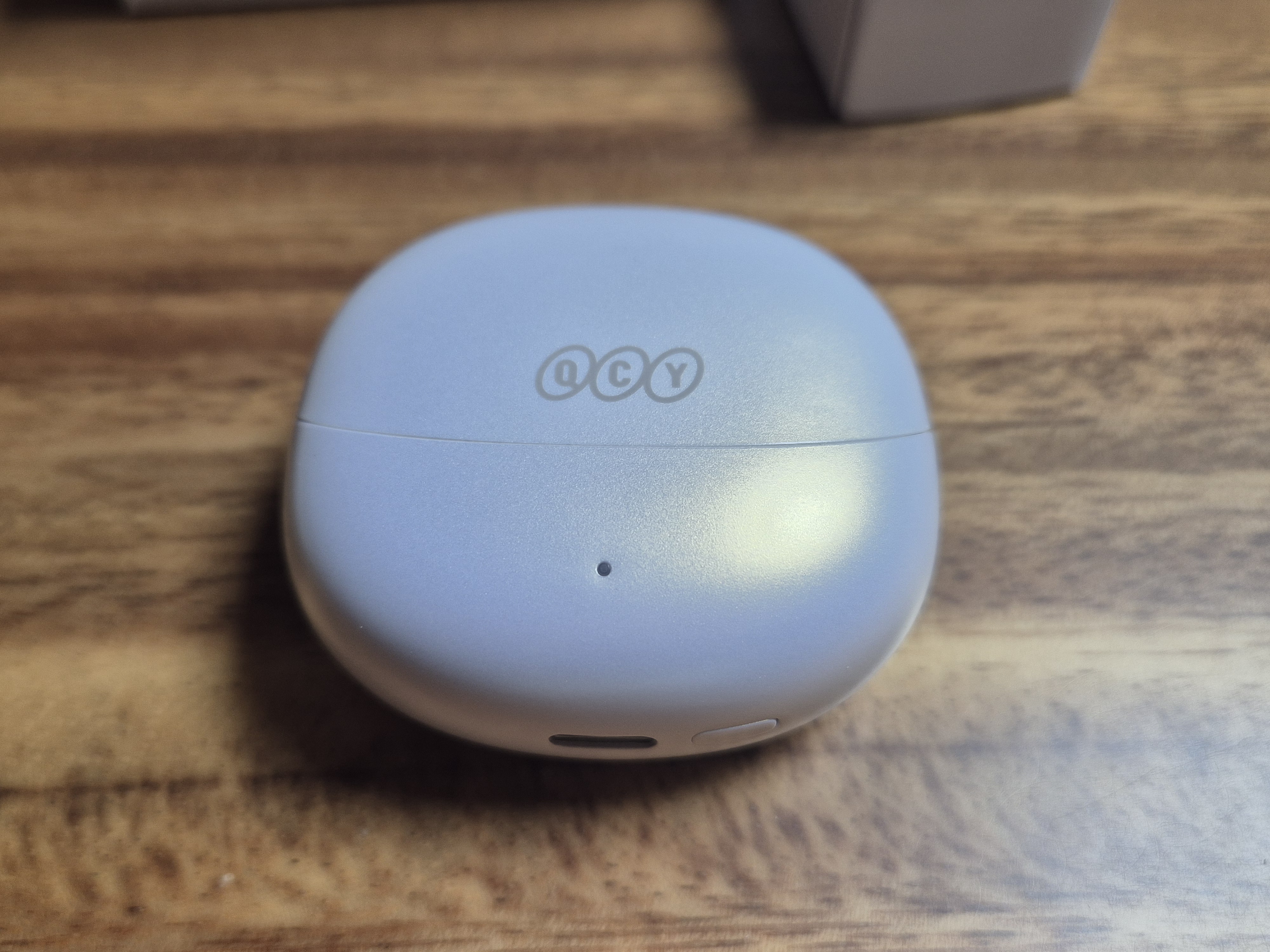 조약돌 모양의 귀여운 케이스에 QCY라고 로고가 박혀있고, 색상은 약간 카멜레온빛이 감도는 흰색이다. 펄감이라고 해야할지. 단순 펄이라고 하기엔 초록빛 같은게 드는걸로 봐선 카멜레온 펄이 아닌가 싶다.