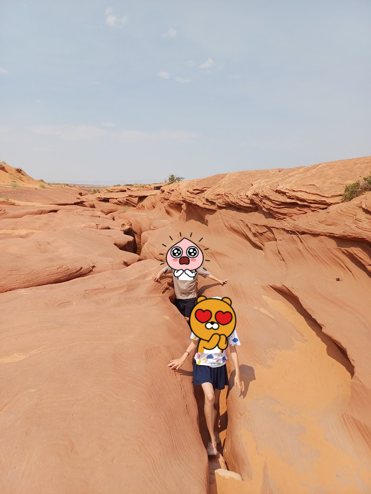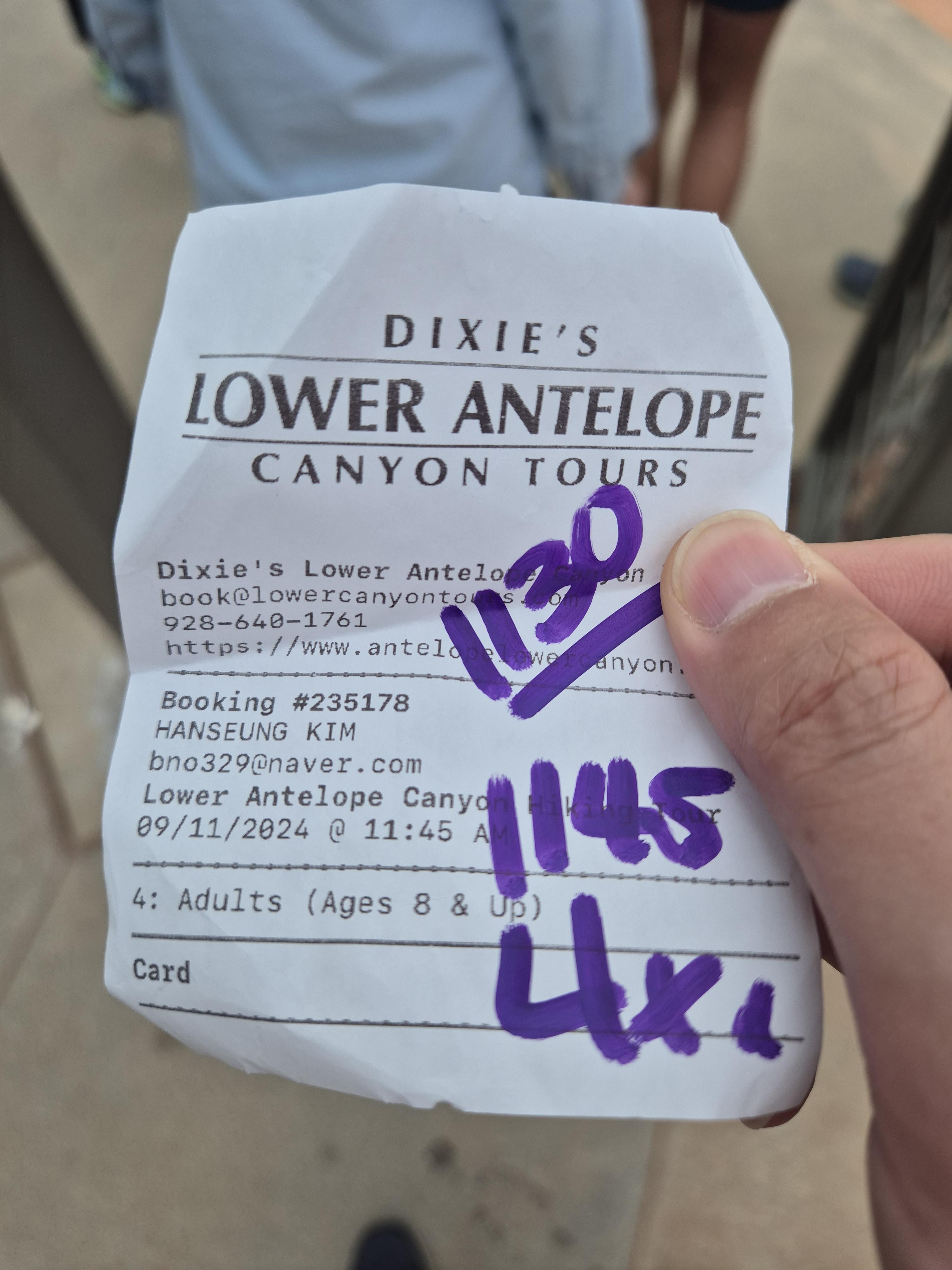 엔털롭캐년이 있는 지역의 시간대가 그랜드캐년과 같다고 알고 있는데, 유타주랑 멀지않아서 그런지 폰 시간이 자꾸 왔다갔다한다. 마음속에 '설마 내가 잘못 알아본건 아닌가'하는 생각이 들어 상당히 신경이 쓰였다. 우리가 예약한건 11시45분 투어인데 도착했을때 내 폰의 시계는 12시를 넘기고 있었기에 살짝 쫄렸지만, 다행히 도착지 안내센터 벽에 걸려있는 시계의 시간은 폰과는 다르게 11시 조금 넘은시간으로 잘 예상대로 잘 도착했다.