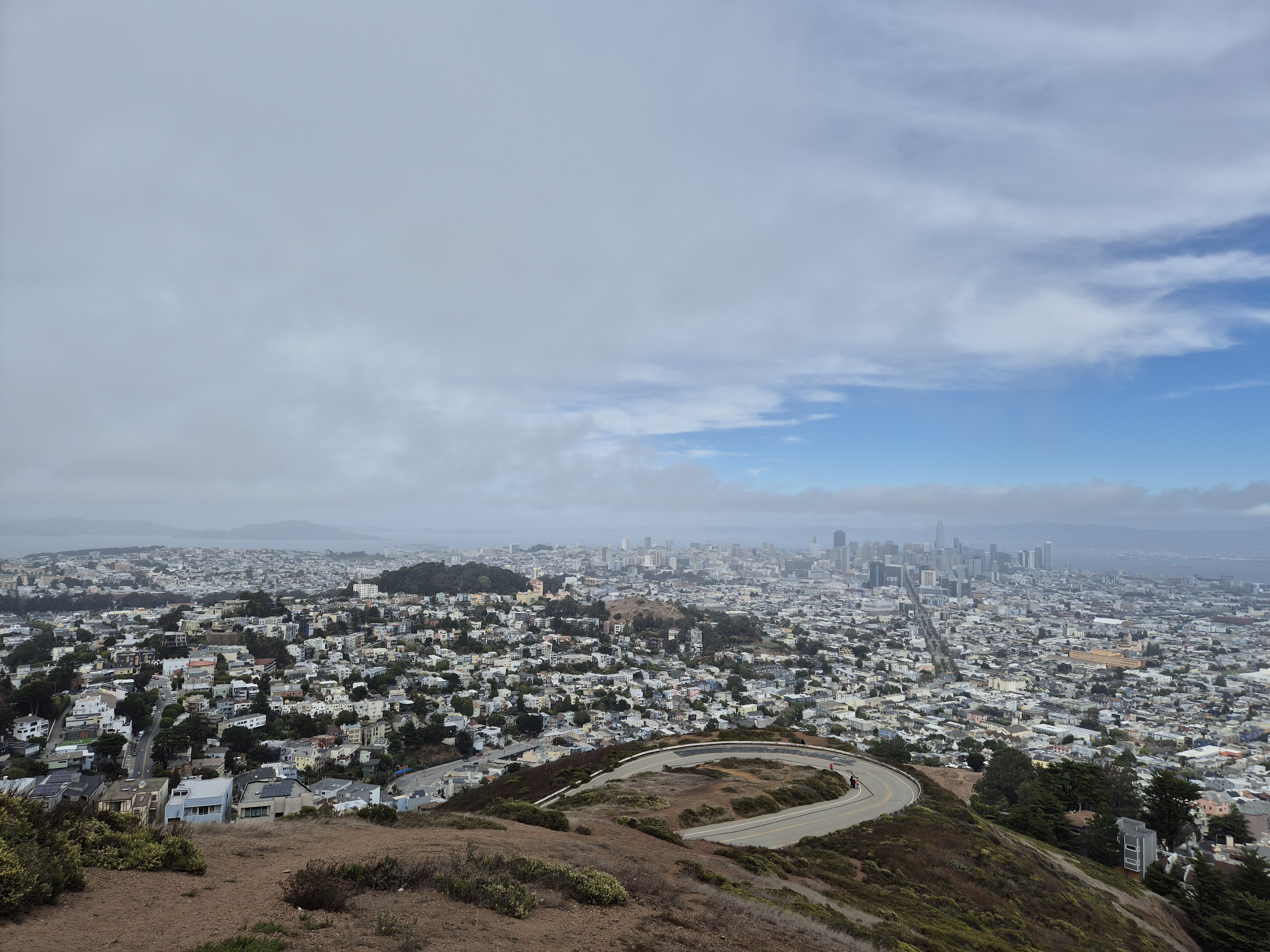 오후에 몬터레이쪽으로 내려가 카멜바이더씨를 가기로 했기때문에 말은 트윈픽스지만 크리스마스 포인트쪽만 빠르게 구경. 샌프란시스코 전경을 볼 수 있는데, 오전과 달리 다시 구름인지 안개가 끼기 시작해서 생각만큼 뷰가 좋진 않았다. 그래도 오전에 관광할때 해가 잘 났던것에 감사하는 마음이었다.