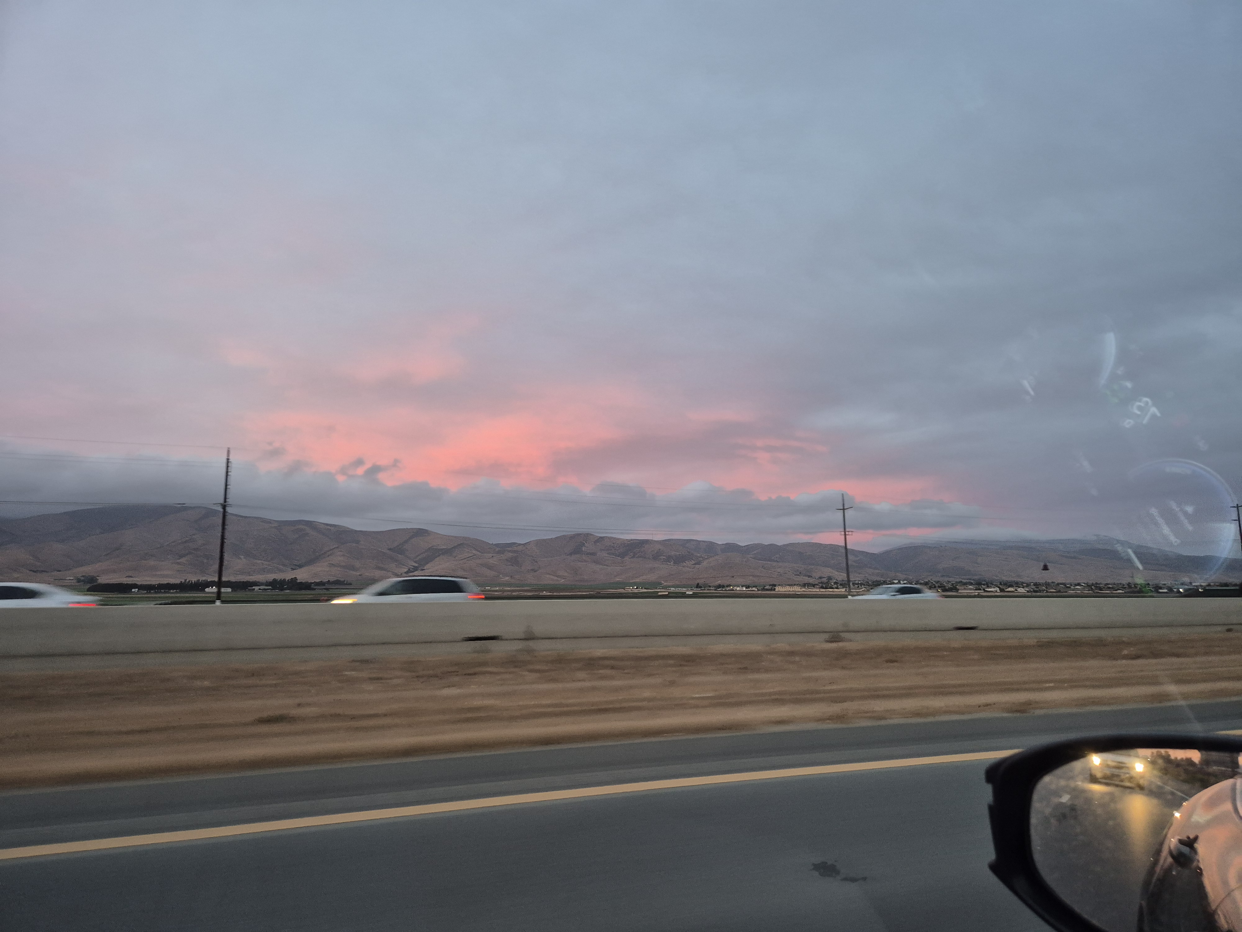 내일 다시 LA까지 운전해야하므로 운전부담을 줄이기위해 파소 로블레스로 향한다. 불타는 저녁노을과 함께 드라이브!