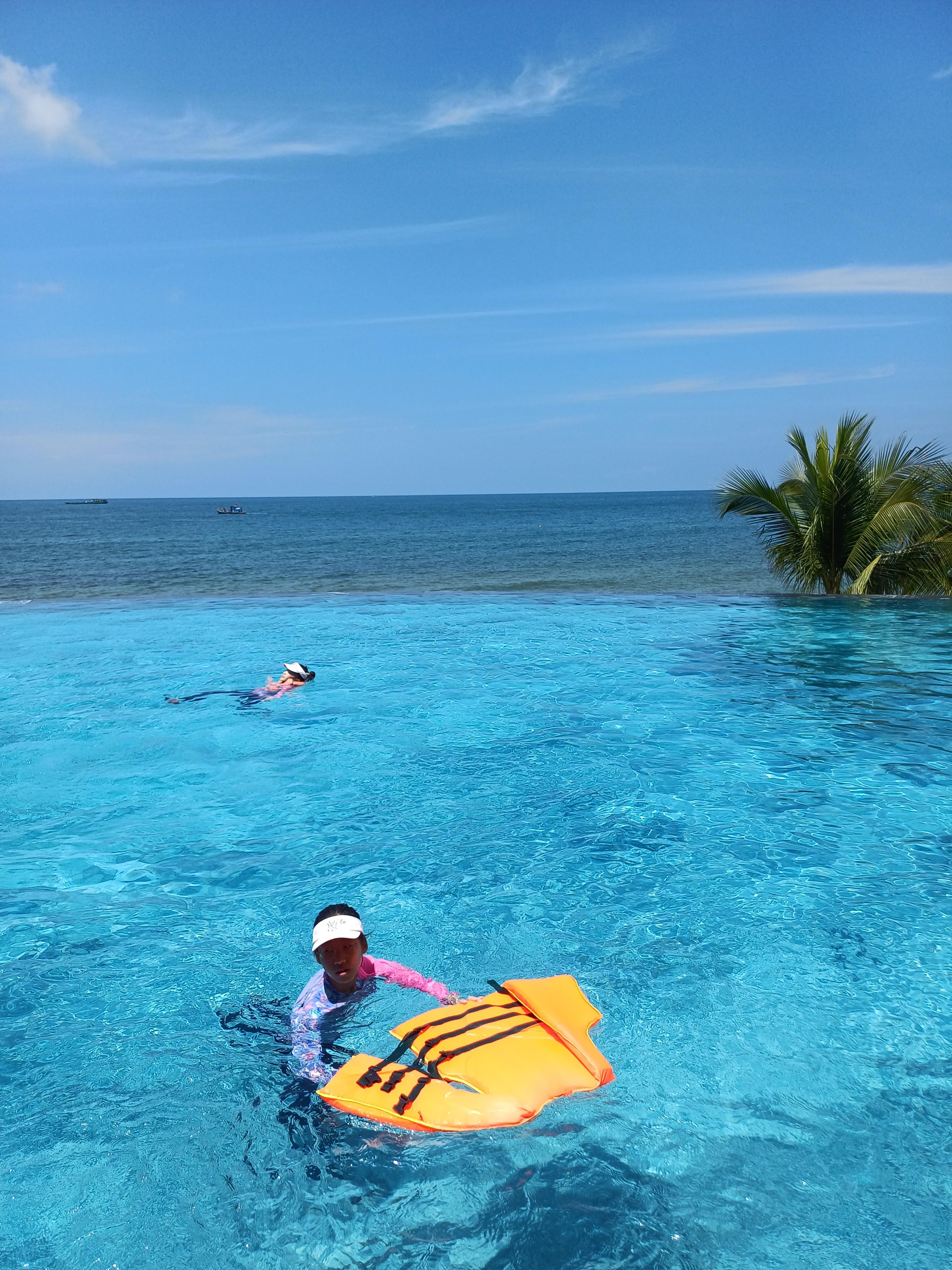아이들이 물놀이를 넘나 원해서 물놀이도 즐기게 해주었다. 해가 나기 시작하니 바다와 함께 정말 멋진 인핕니티풀이 나왔다. 굿굿..
